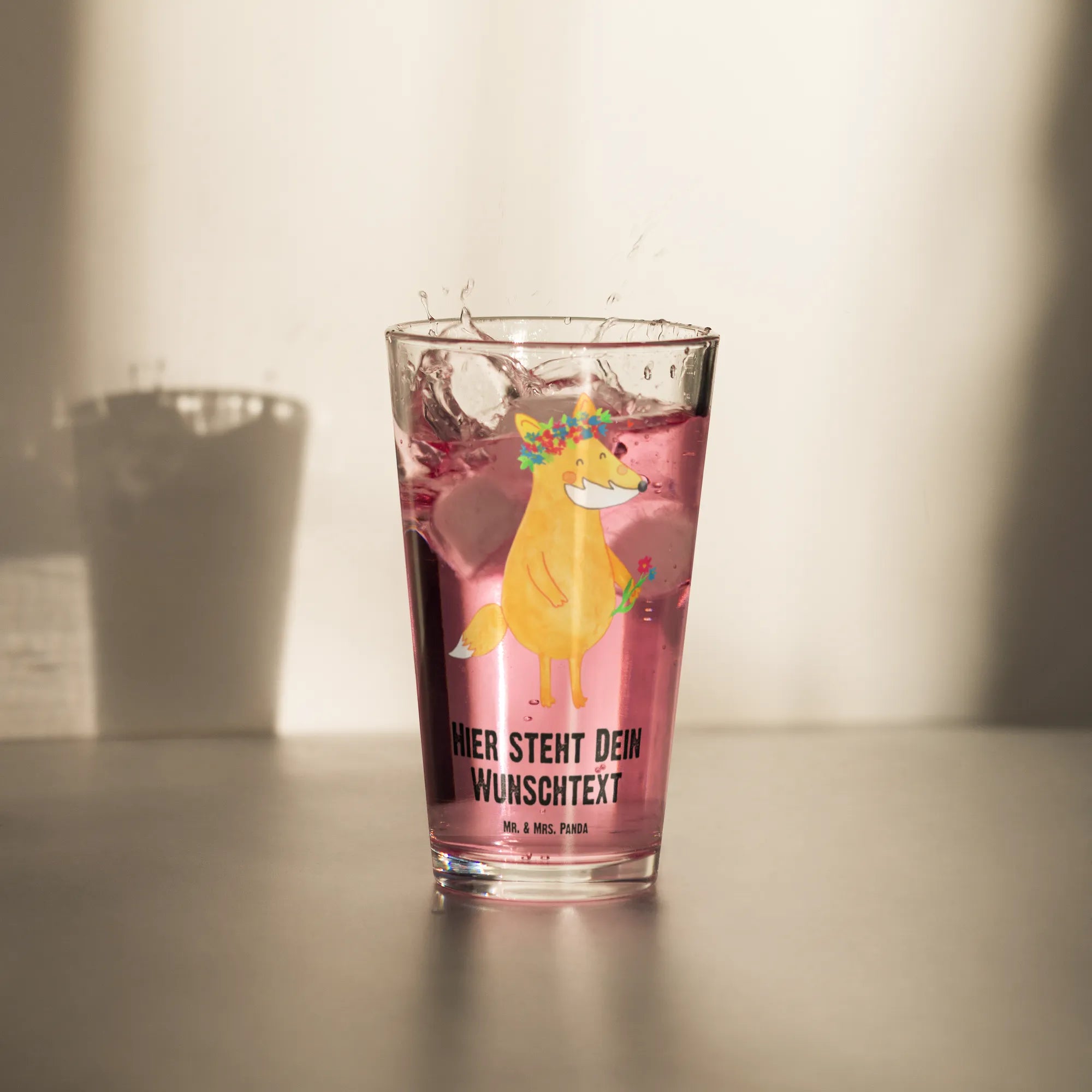 Spersonalizowana szklanka do picia lis Kwiaty – Mr. & Mrs. Panda