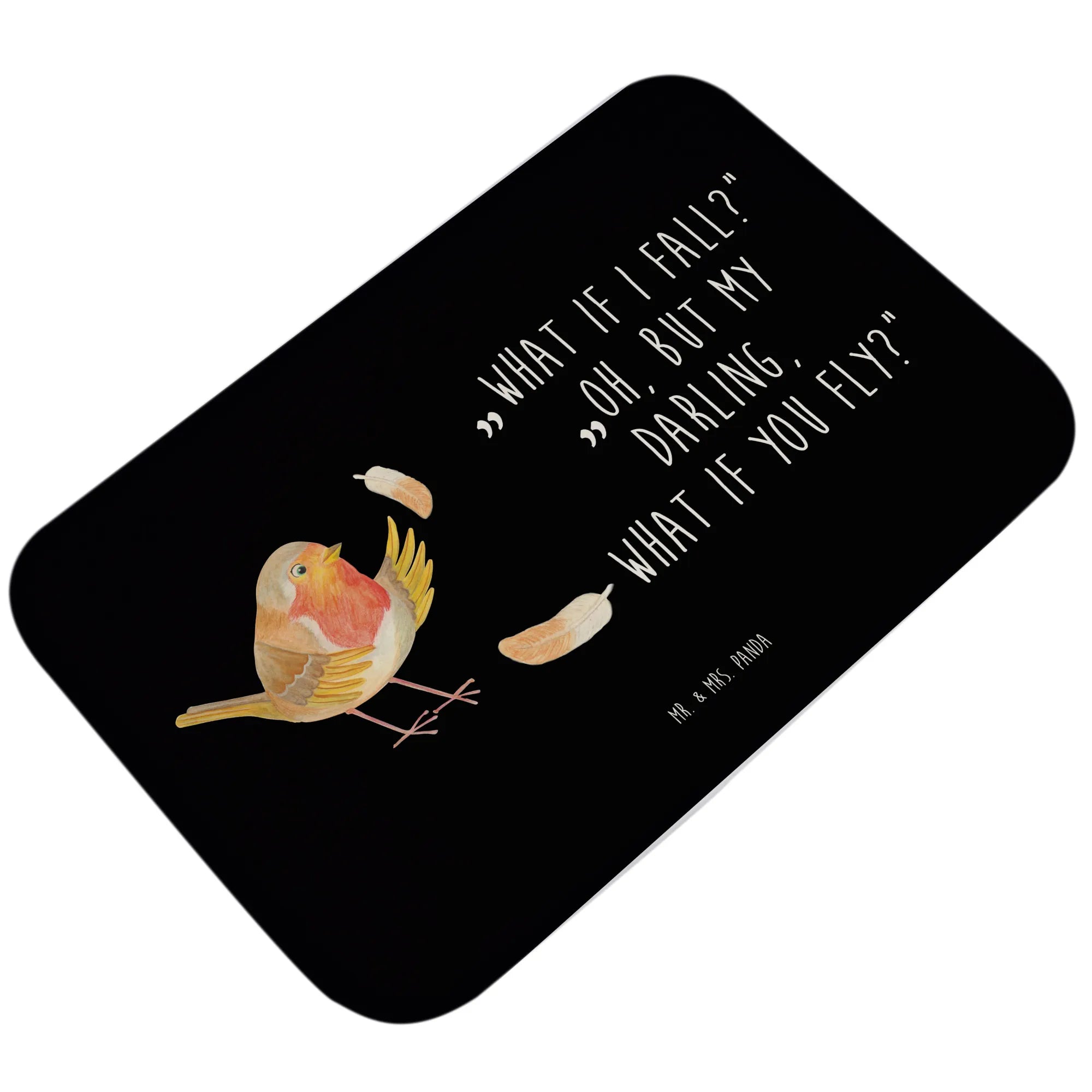dywanik łazienkowy rudzik Pióra - z napisem - Czarny