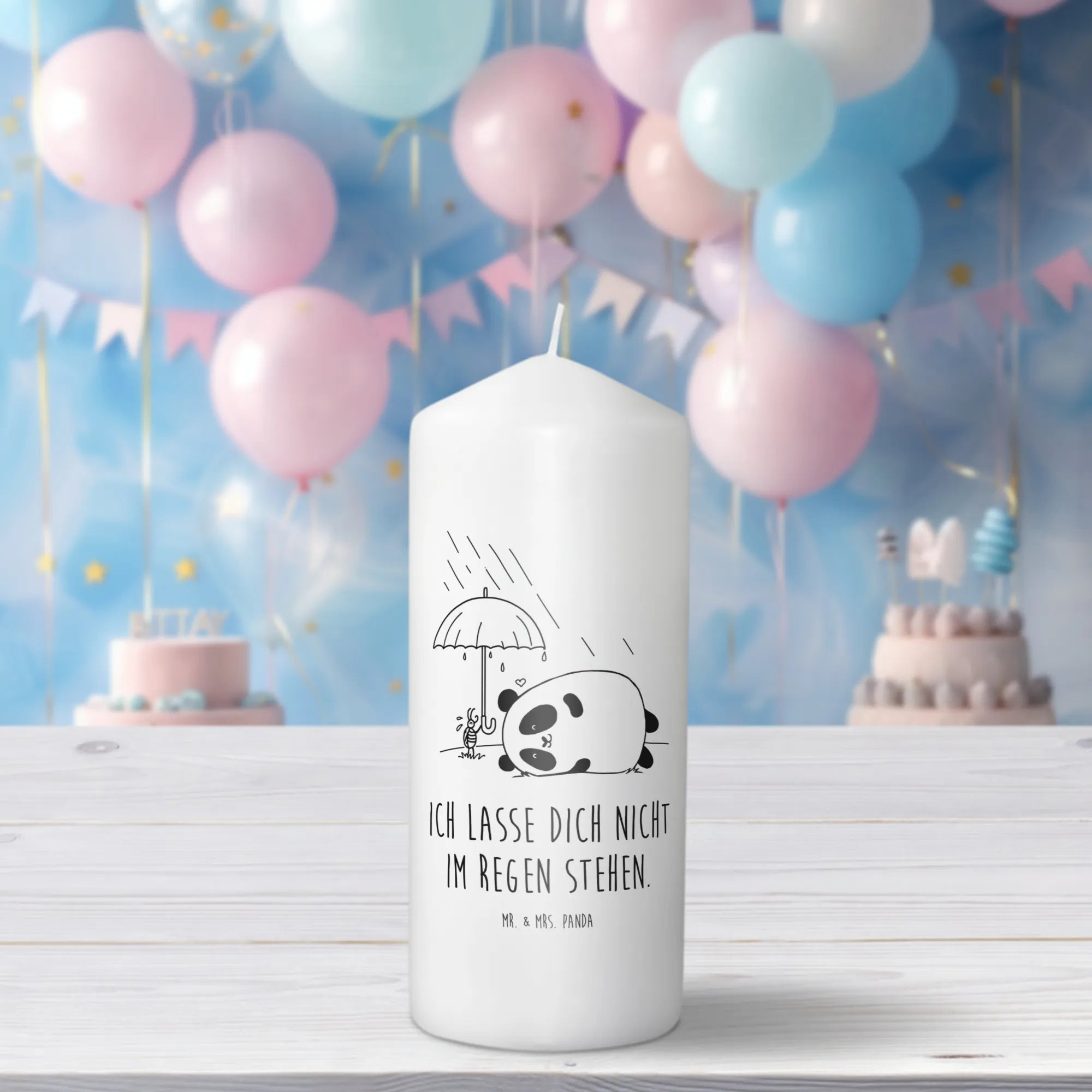 Die Easy & Peasy Freundschaft Kerze von Mr. & Mrs. Panda ist mehr als nur eine herkömmliche Kerze – sie ist ein liebevolles Geschenk für besondere Anlässe. Mit ihrem niedlichen Motiven und dem warmen Spruch "Ich lasse dich nicht im Regen stehen" bringt sie Freude und Trost in jeden Raum. Diese Taufkerze eignet sich perfekt als Taufgeschenk oder Geburtstagskerze und ist eine wunderbare Möglichkeit, Deine besten Freunde wissen zu lassen, dass für sie immer ein Platz in Deinem Herzen ist. Die Kerze zeigt einen süßen Panda, der dankbar von einem marienkäferlichen Freund unter einem großen Regenschirm beschützt wird. Diese herzerwärmende Szene symbolisiert Freundschaft und Unterstützung in schwierigen Zeiten.