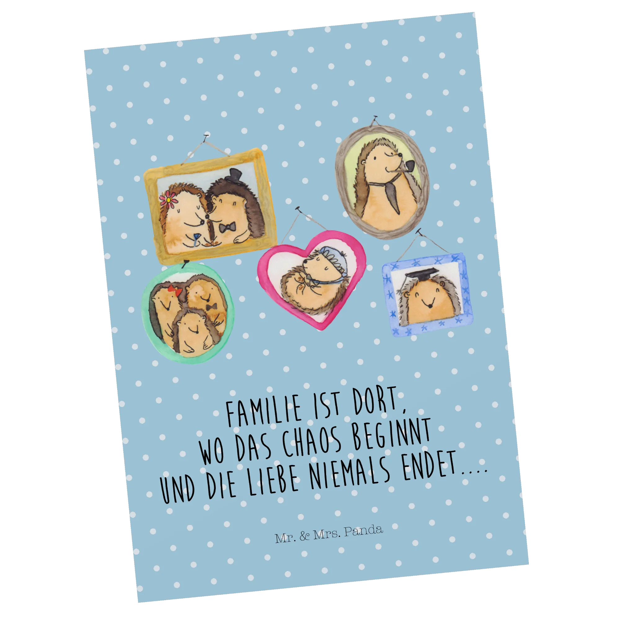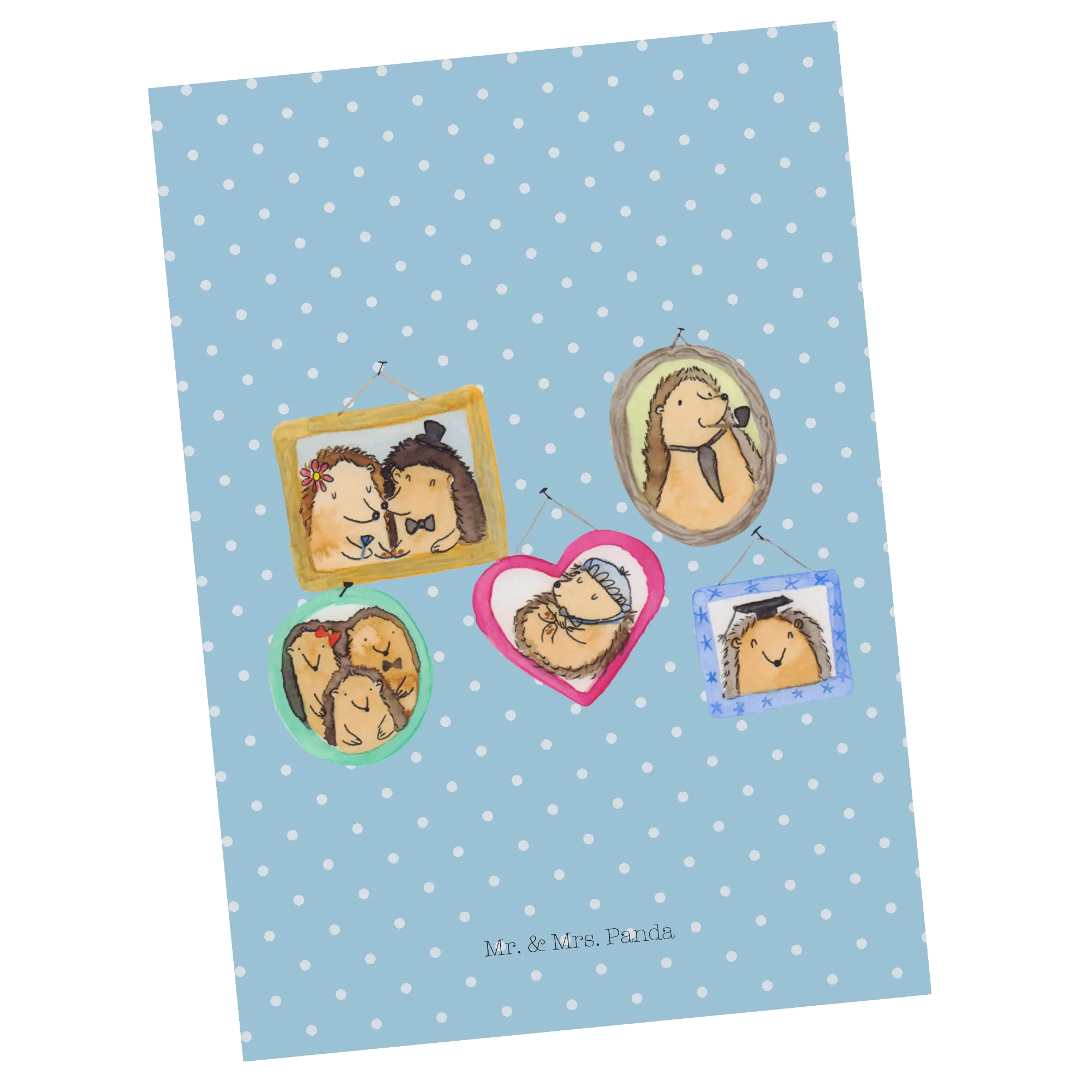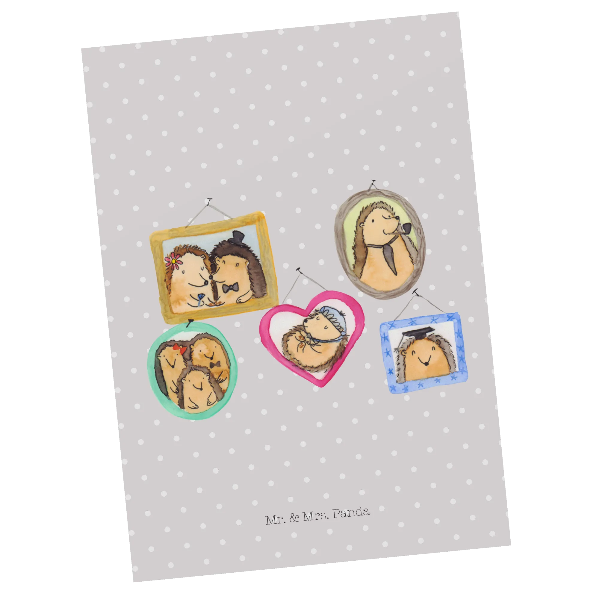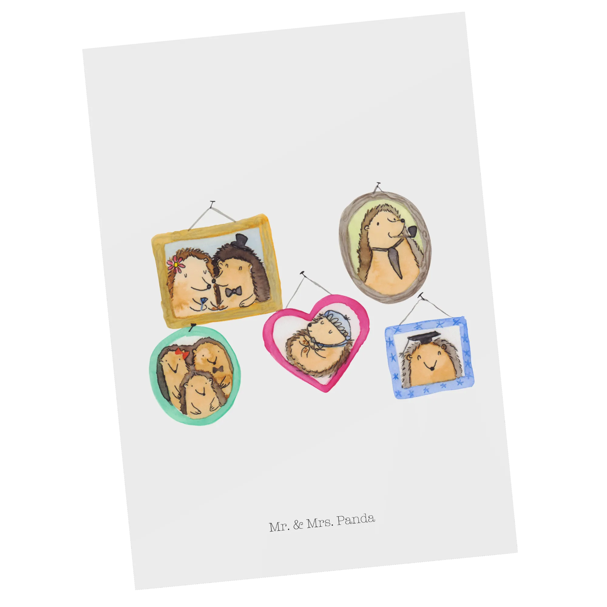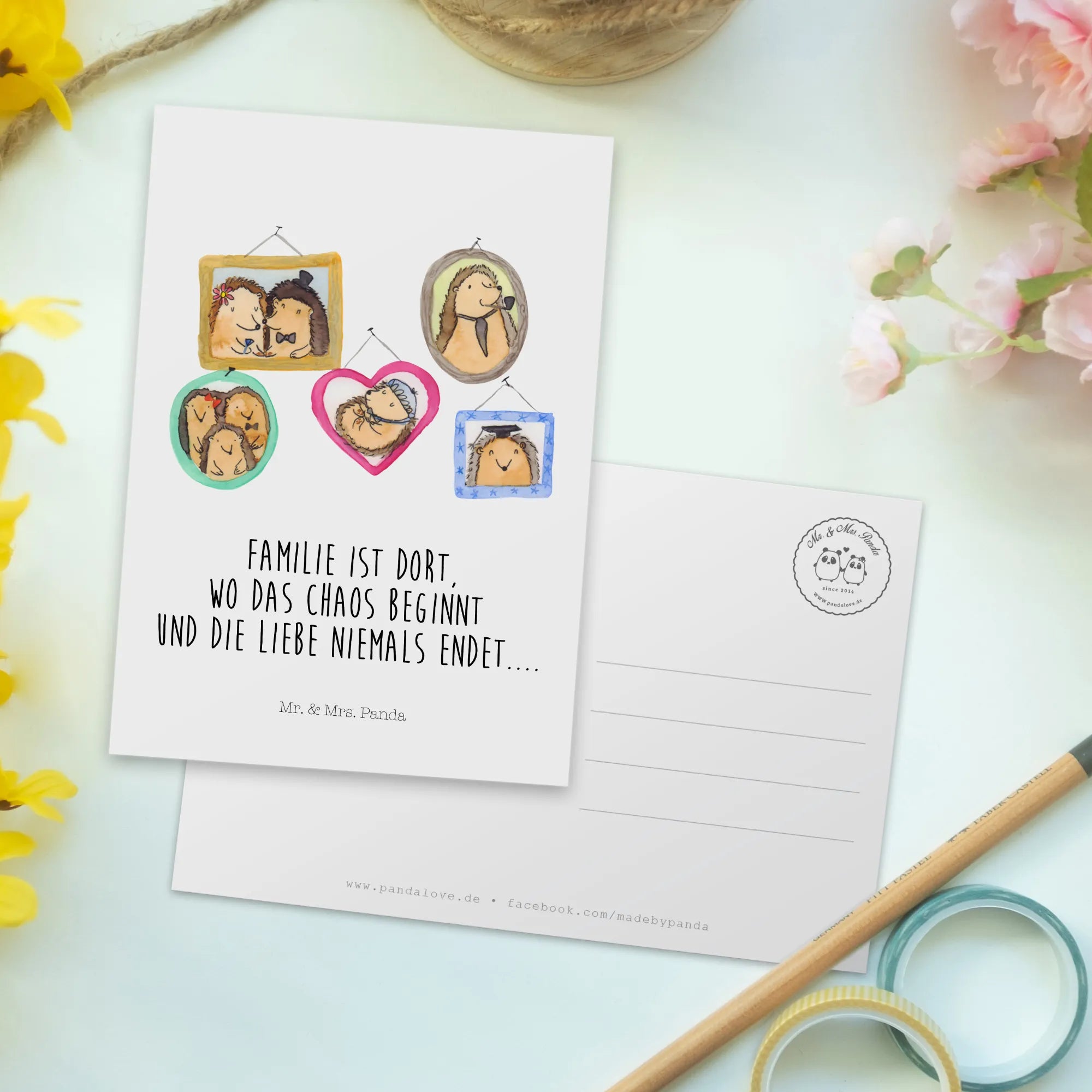 Pocztówka Rodzina jeży - z napisem - Żółty Pastel