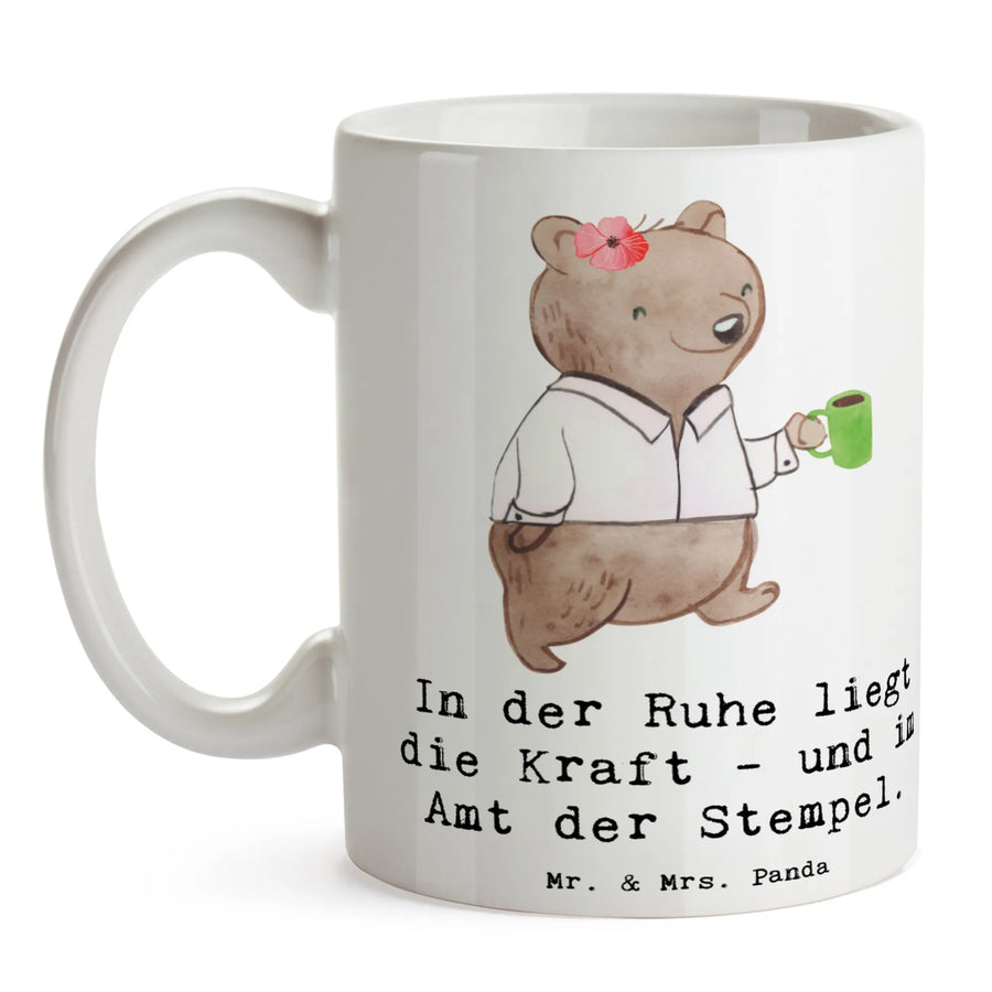 Entdecke die bezaubernde Kaffeetasse "Beamtin" aus der liebevoll gestalteten Berufe Kollektion von Mr. & Mrs. Panda! Diese spülmaschinenfeste Keramiktasse ist nicht nur ein praktisches Accessoire für deinen Büroalltag, sondern bringt auch ein Stückchen Freude in deine Kaffeepause. Mit dem eingängigen Slogan "In der Ruhe liegt die Kraft - und im Amt der Stempel" wird jede Tasse zu einem kleinen Motivationsschub.