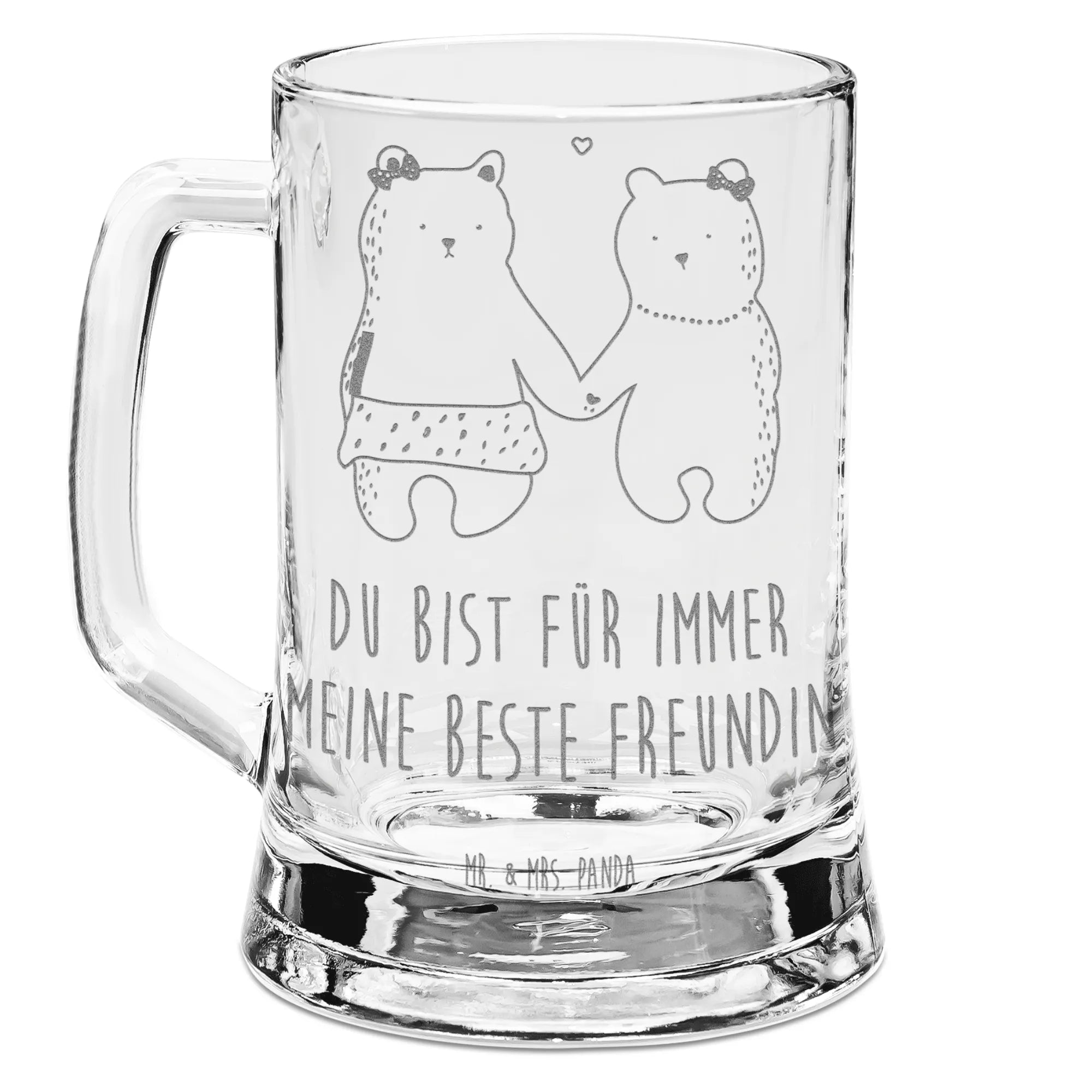 Der Gravur Bierkrug mit dem Motiv Bär Freundin von Mr. & Mrs. Panda ist das perfekte Geschenk für alle, die lieben, Bier zu trinken und gleichzeitig ihren Freunden zu zeigen, wie viel sie ihnen bedeuten. Egal ob zum Geburtstag, für den Vatertag oder einfach nur als kleine Aufmerksamkeiten, dieser wunderschöne Bierkrug wird garantiert für Freude sorgen. Die zauberhaften Bärenmädchen, die sich an den Händen halten, stehen für die Wichtigkeit der Freundschaft und verleihen jedem Anlass eine besondere Note.