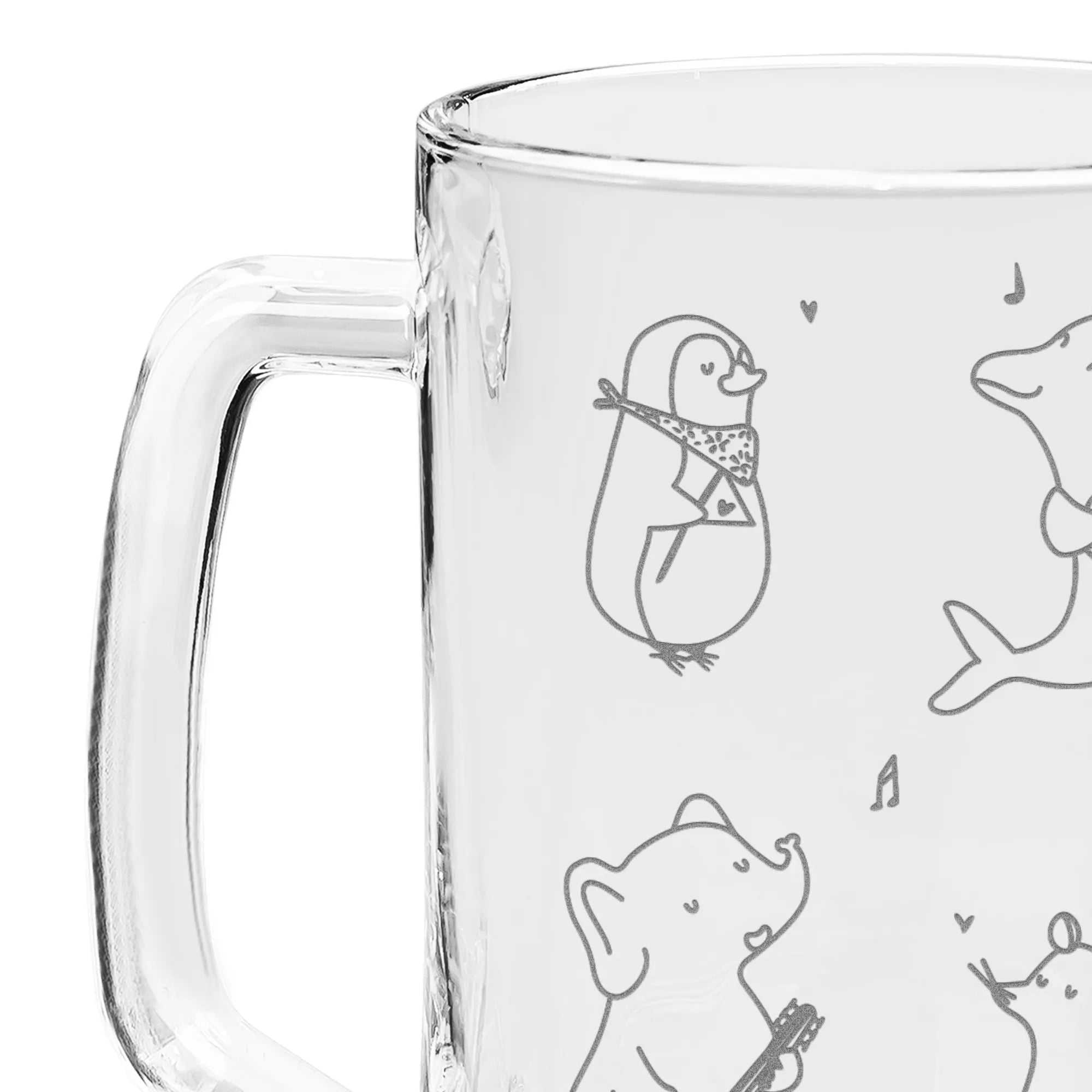Mit einem lustigen Pinguin, einer Maus, einem Elefanten und einem Delfin, die zusammen musizieren, zaubert dieser Bierkrug ein Lächeln auf jedes Gesicht. Die hochwertig lasergravierte Oberfläche sorgt für einen stilvollen Matteffekt, der die Details des Designs perfekt zur Geltung bringt.
