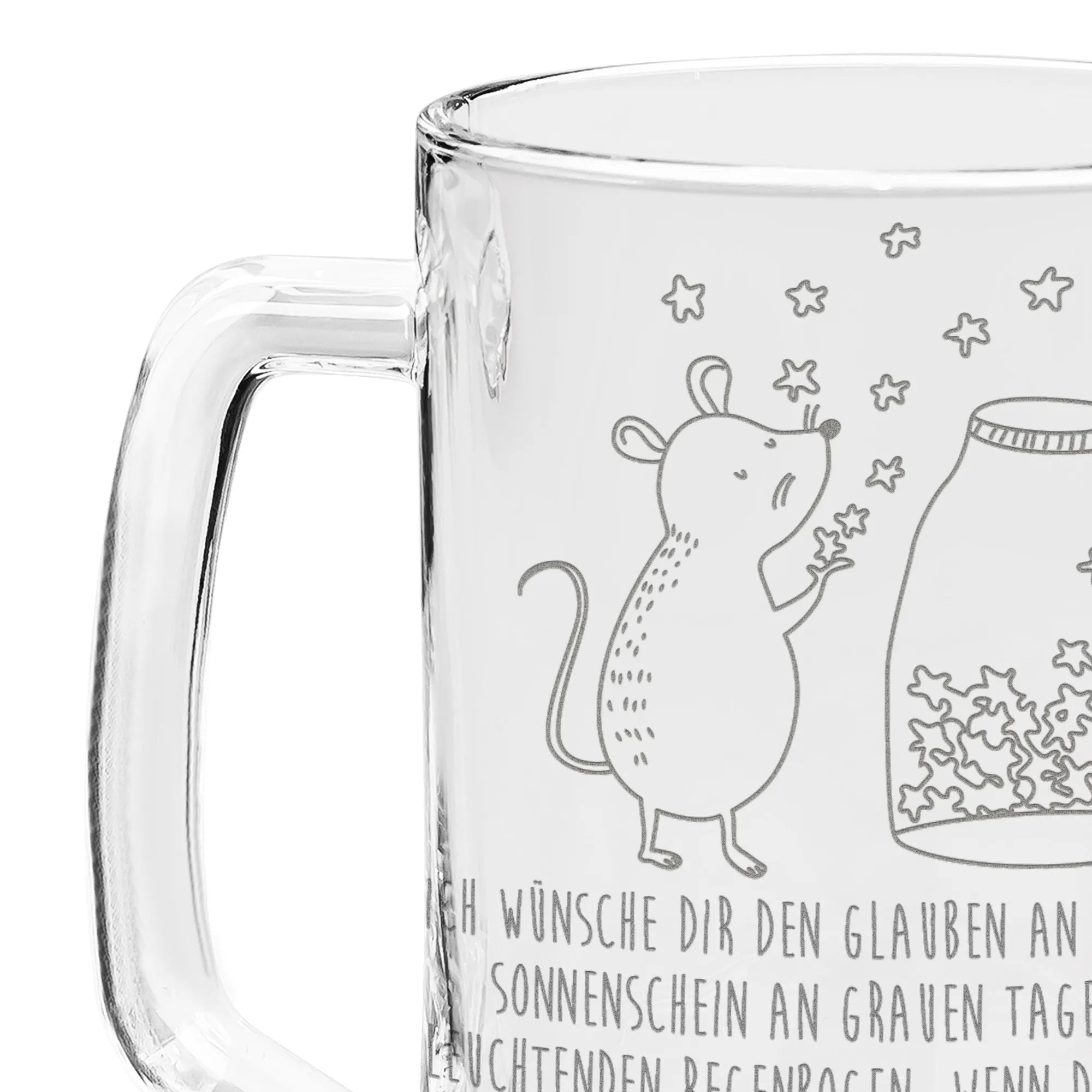 Der wunderschöne Gravur Bierkrug mit dem bezaubernden Motiv Maus Sterne aus der Small World Kollektion von Mr. & Mrs. Panda ist das perfekte Geschenk für jeden Anlass. Ob zum Geburtstag, Vatertag, als Taufschenkung oder zur Geburt eines Kindes – dieser Bierkrug bringt jedem, der gerne Bier trinkt, Freude und ein Lächeln ins Gesicht. Die süße Maus, die vor einem funkelnden Glas voller Sterne sitzt, lädt ein, gemeinsam in die Weiten des Universums abzutauchen und Träume wahr werden zu lassen.