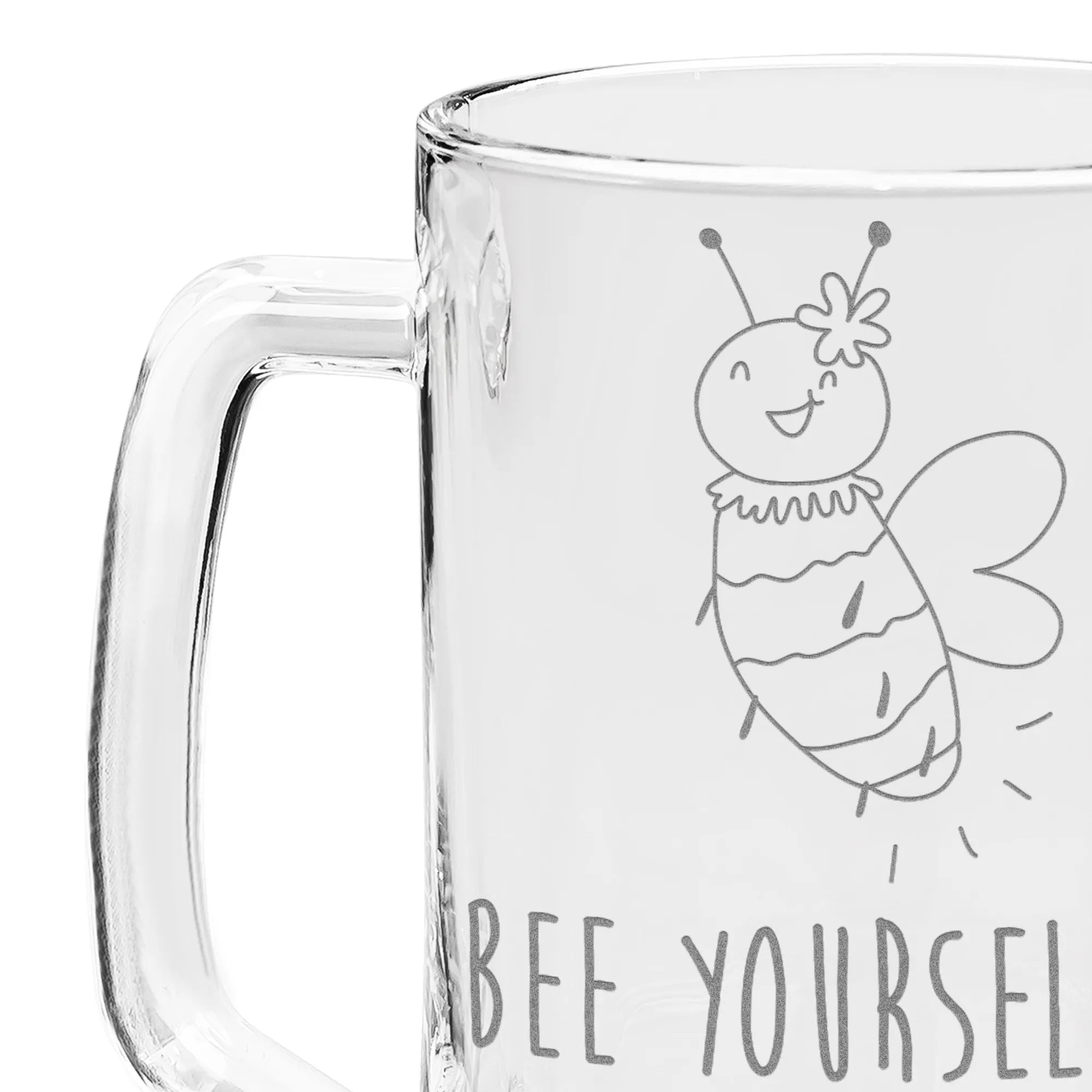 Der hochwertige Bierkrug aus robustem Glas überzeugt nicht nur durch seine Größe von 450 ml, sondern auch durch die liebevolle Gravur, die mit einem wunderschönen Spruch versehen ist: "Bee yourself in every single way". Dieses kleine, aber feine Detail kombiniert mit dem fröhlichen Bienendesign bringt ein wenig Sommer und Freude in den Alltag und erinnert jeden daran, sich selbst treu zu bleiben!