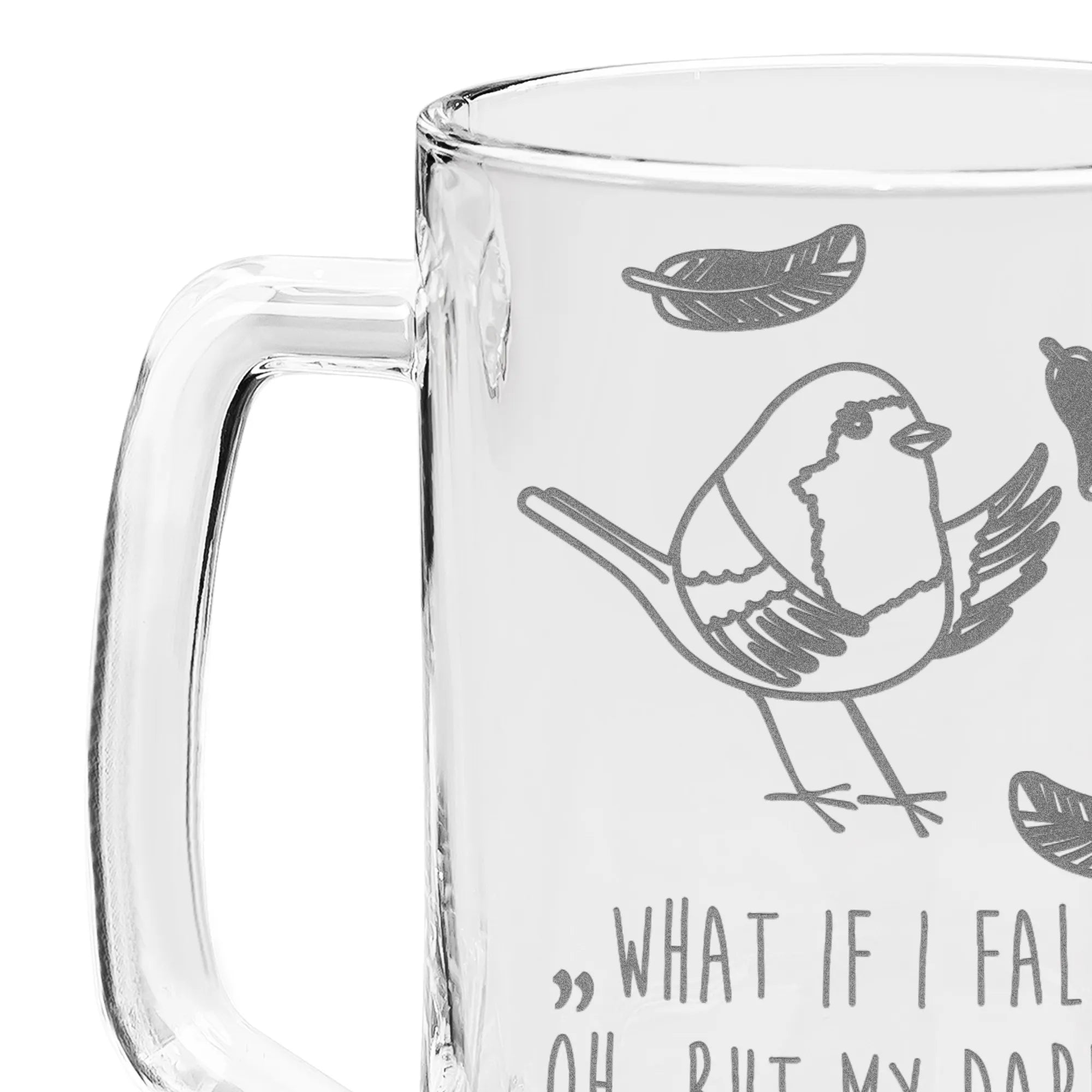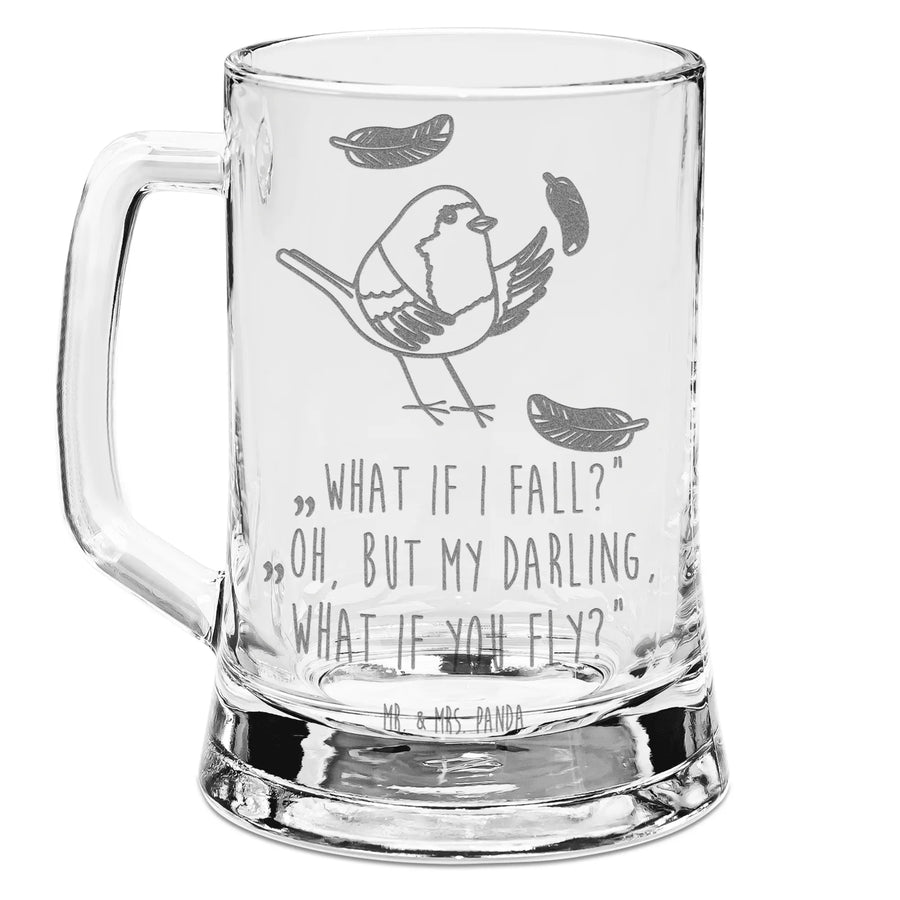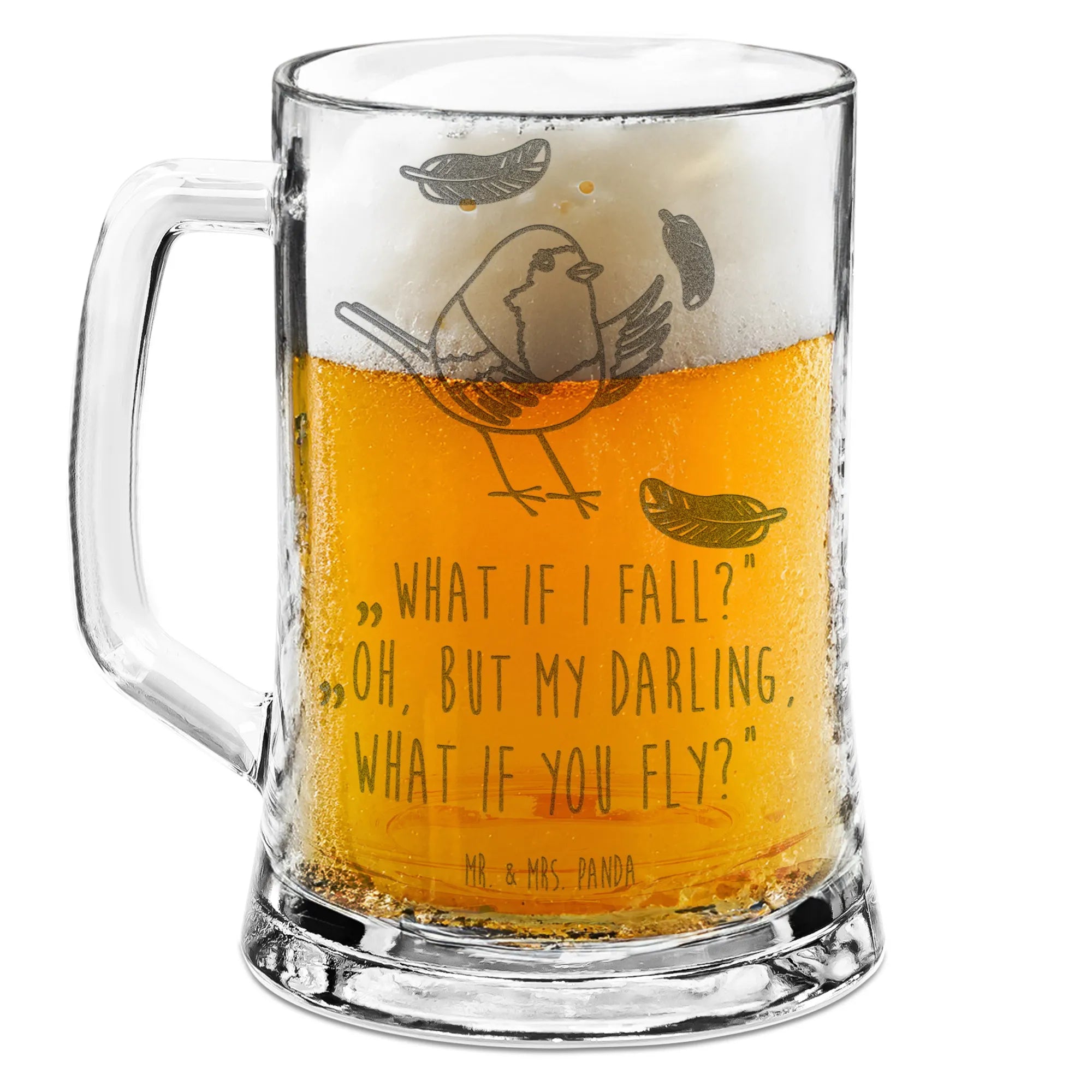 Der wunderschöne Gravur Bierkrug mit dem Motif Rotkehlchen mit Federn von Mr. & Mrs. Panda ist das perfekte Geschenk für alle Bierliebhaber. Ob zum Vatertag, Geburtstag oder einfach nur so – dieser Bierkrug zaubert jedem ein Lächeln ins Gesicht.