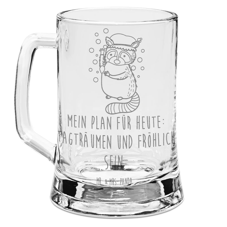 Mit seinem liebevoll gestalteten Waschbären, der fröhlich unter der Dusche plantscht, verleiht dieser Krug jedem Bierabend eine besondere Note. Der hochwertige Bierkrug verfügt über eine großzügige Füllmenge von 450 ml, ideal für ein frisches Bier oder ein kühles Getränk. Bei der Fertigung wurde auf nachhaltige Materialien geachtet, denn der Bierkrug ist aus robustem, spülmaschinengeeignetem Glas hergestellt. Die präzise Lasergravur sorgt dafür, dass das niedliche Waschbär-Motiv und der Slogan "Mein Plan für heute: Tagträumen und fröhlich sein" lange erhalten bleiben und immer ein Lächeln hervorrufen.