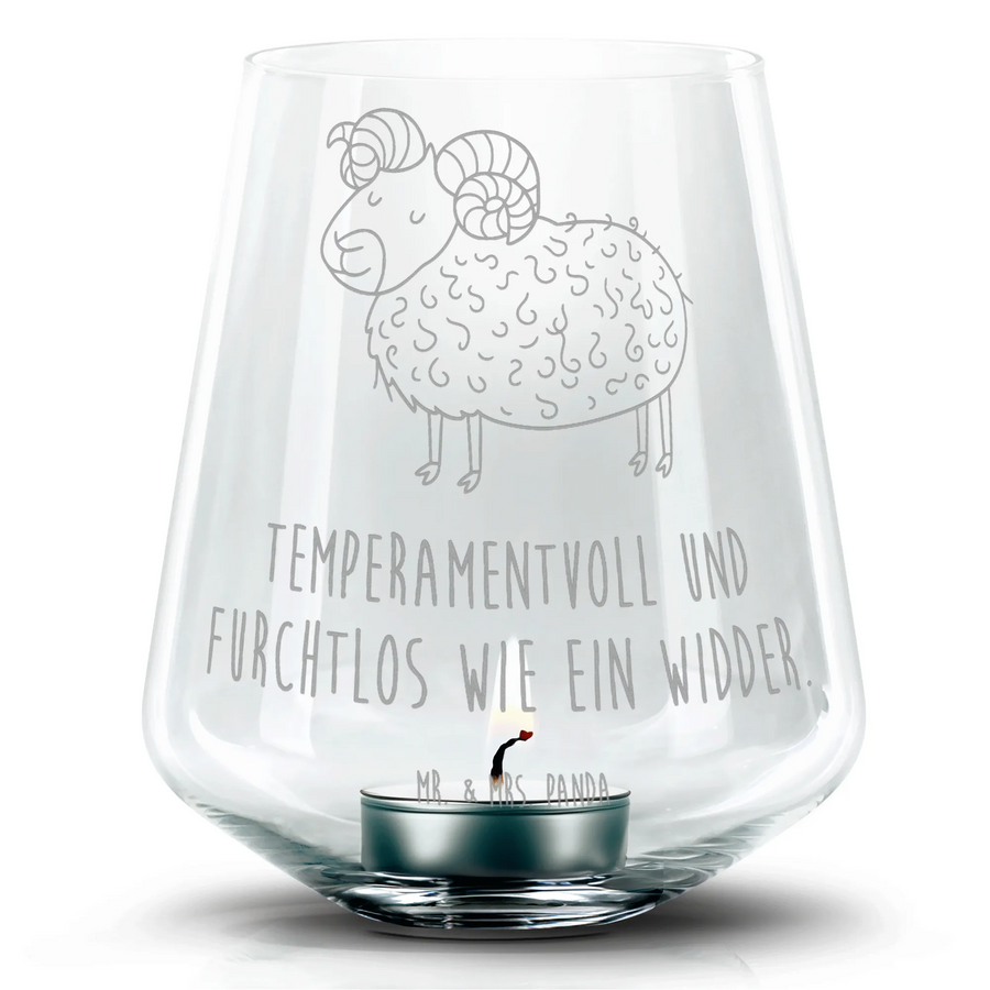 Gravur Windlicht Sternzeichen Widder - mit Spruch