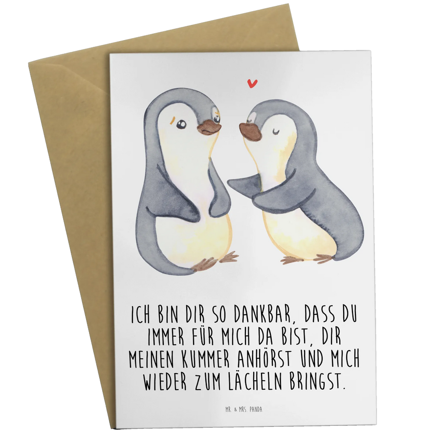 Die Grußkarte „Pinguine trösten“ aus der wundervollen Liebe Kollektion von Mr. & Mrs. Panda ist der perfekte Begleiter für all die besonderen Momente, in denen du einem lieben Menschen zeigen möchtest, wie wichtig er oder sie für dich ist. Ob für den Jahrestag, zum Geburtstag, oder einfach nur so, diese Karte ist ein ganz besonderes Liebesgeschenk für deine Partnerin oder deinen Partner. Die Pinguine auf der Vorderseite, die sich zärtlich zuneigen, sind nicht nur süß anzusehen, sie stehen auch für Geborgenheit und Trost – genau das, was du in einem emotionalen Moment vermitteln möchtest.