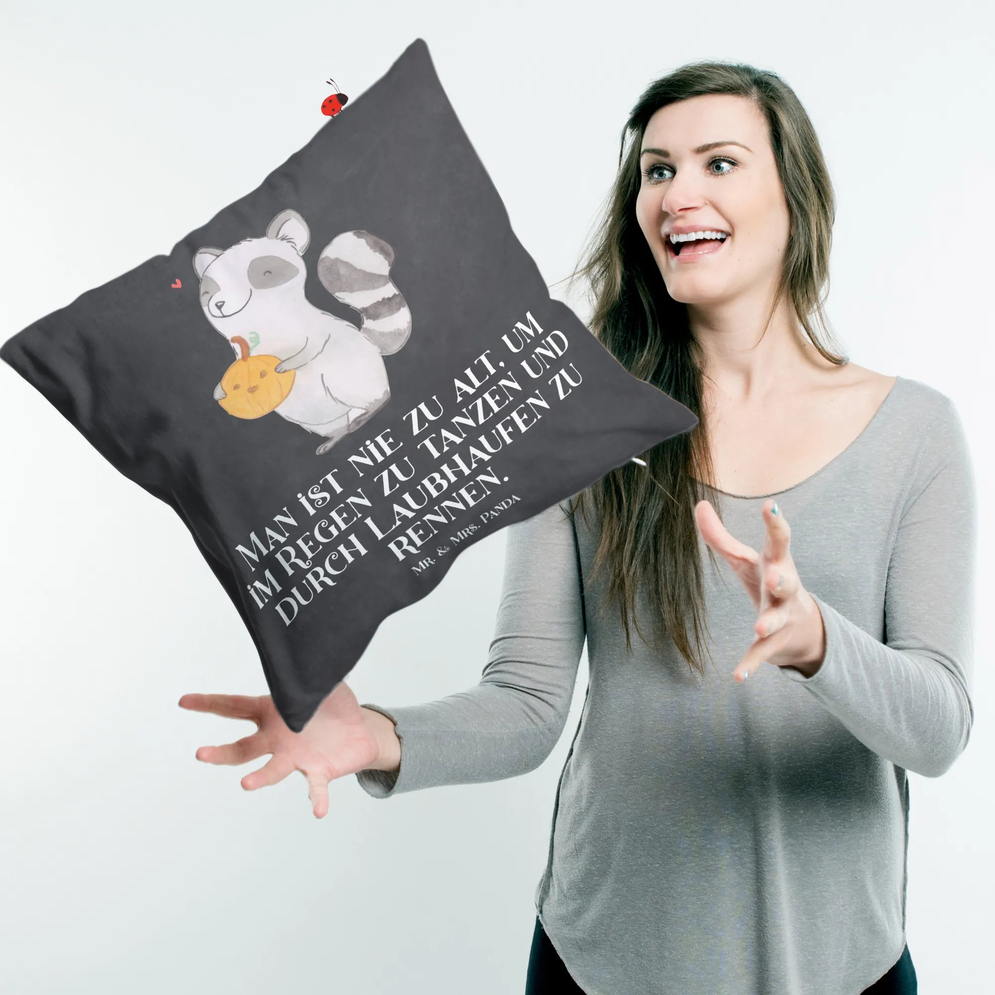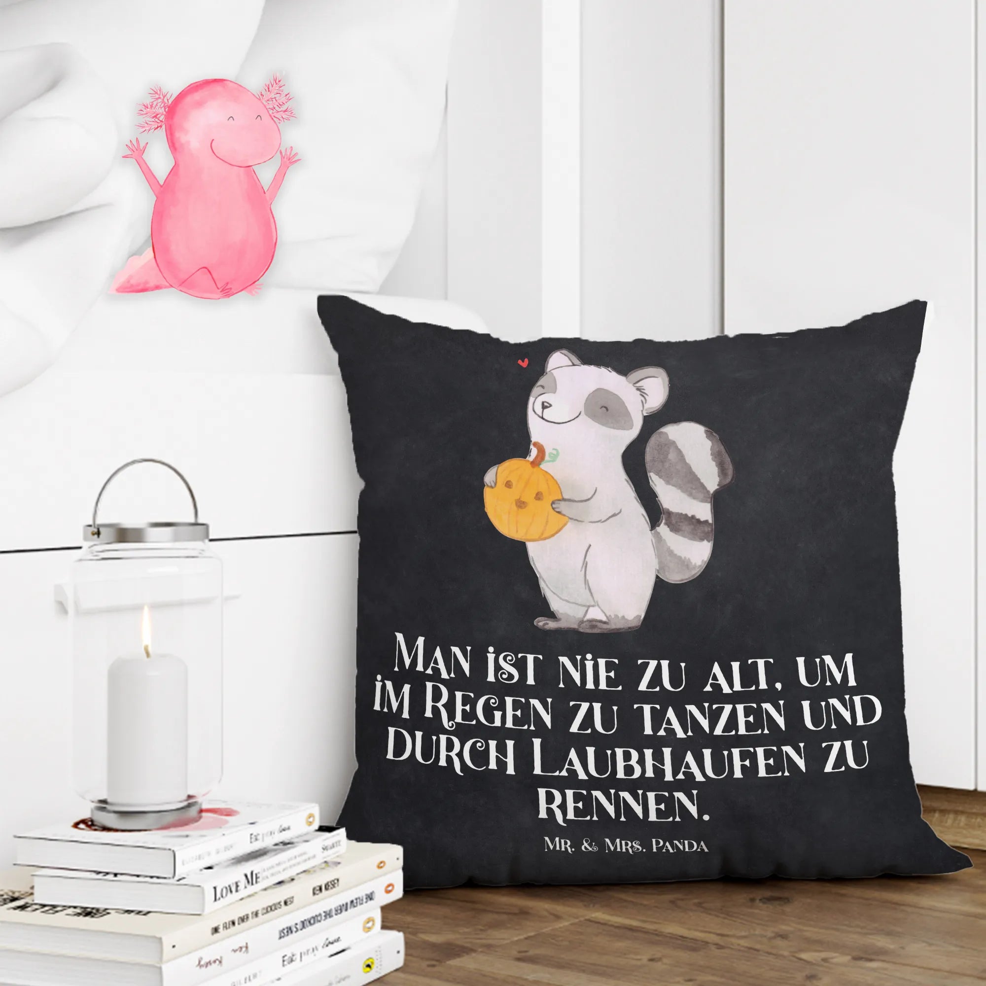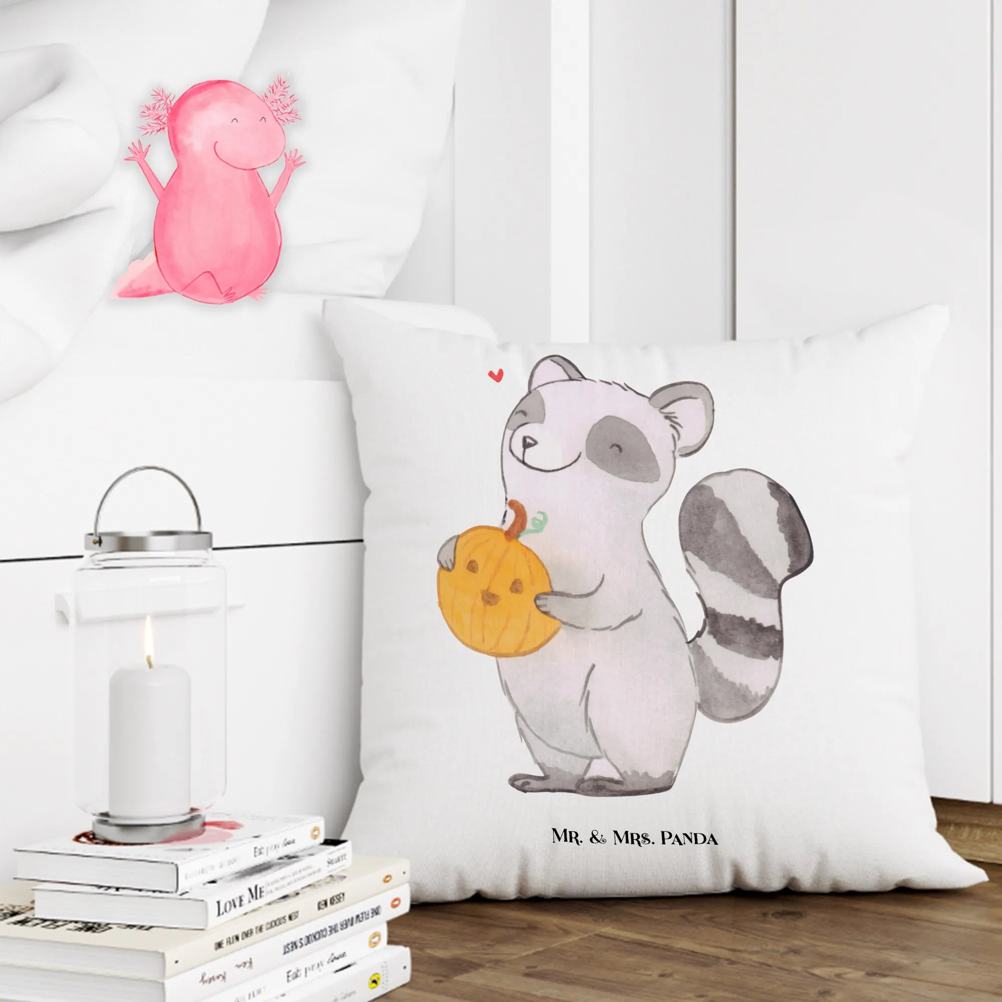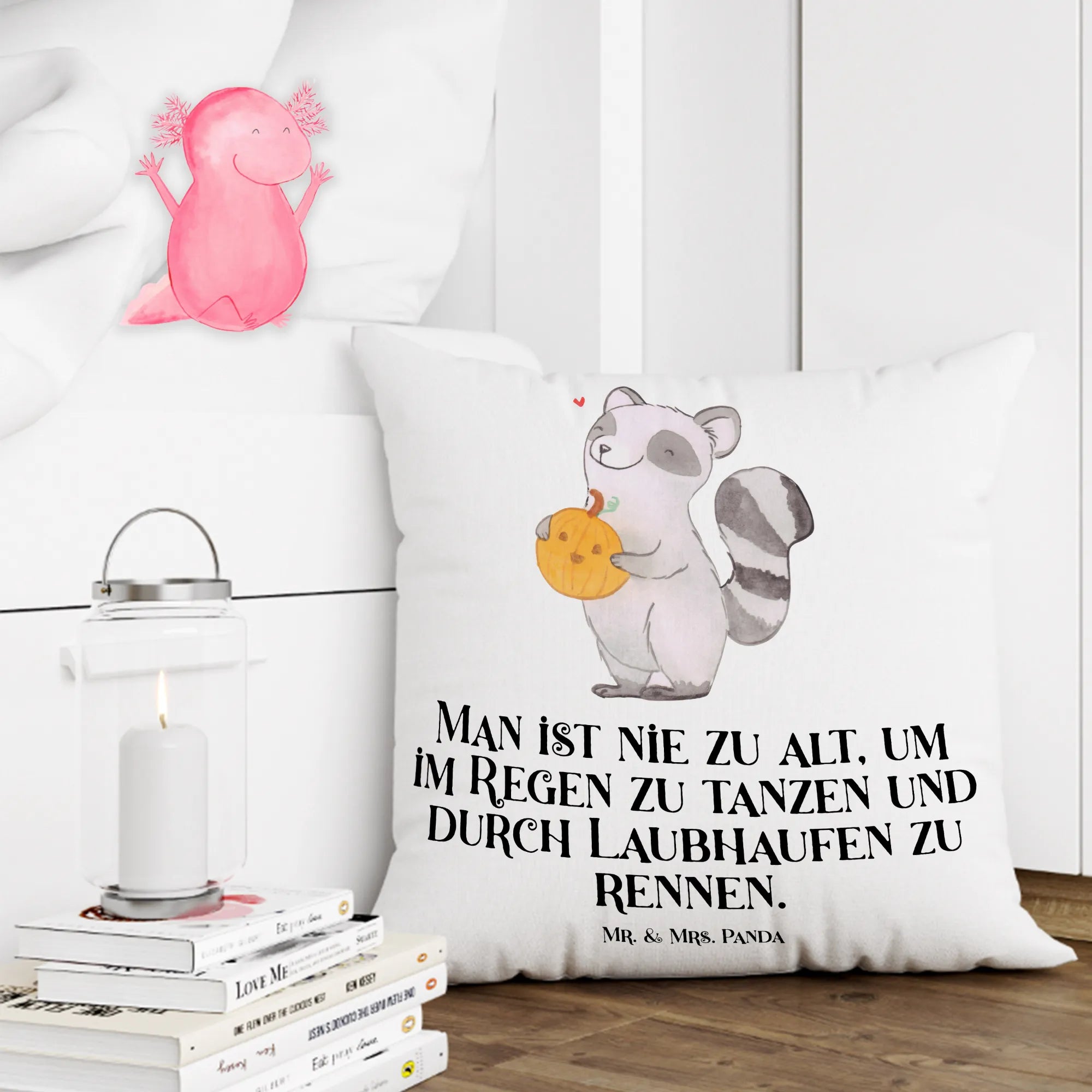 40x40 poduszka szop pracz dynia - z napisem - Kreda