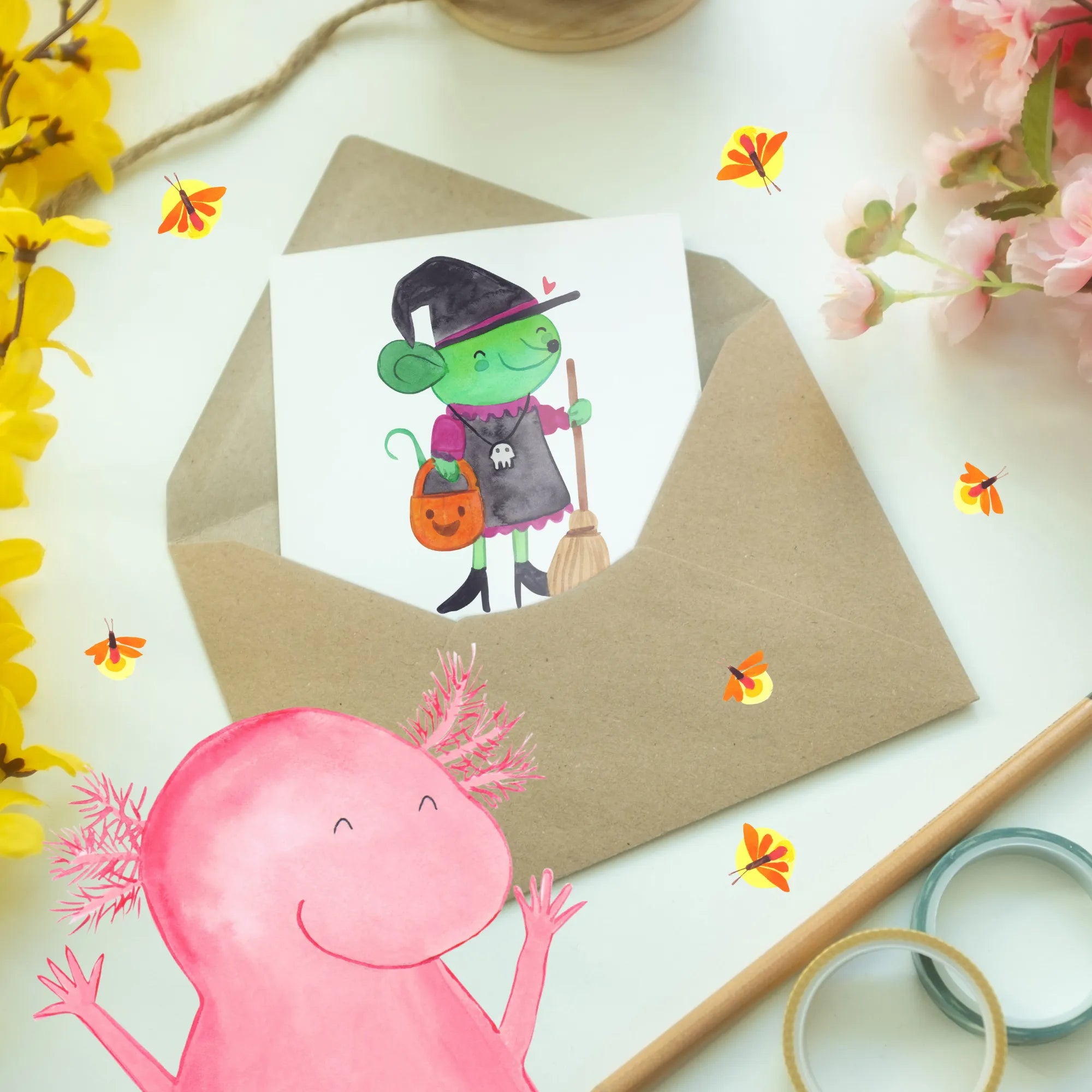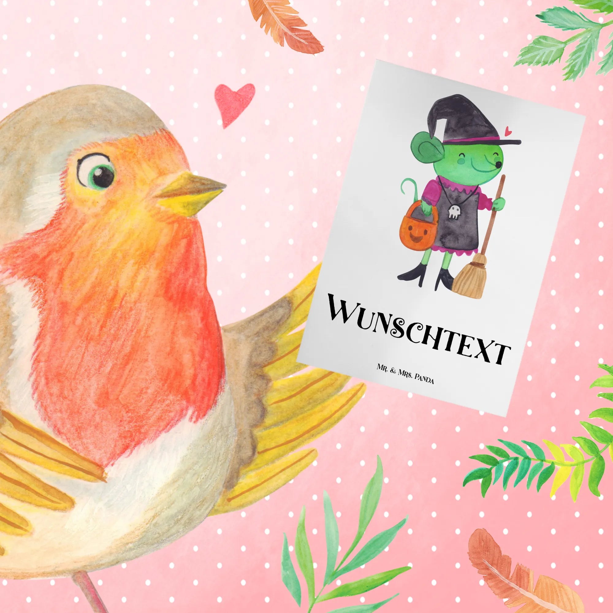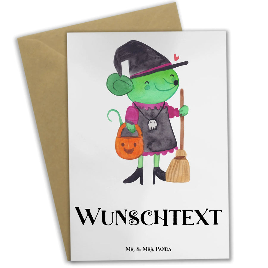 Entdecke die magische Welt der Halloween-Feierlichkeiten mit unserer personalisierten Grußkarte "Maus Hexe" von Mr. & Mrs. Panda!