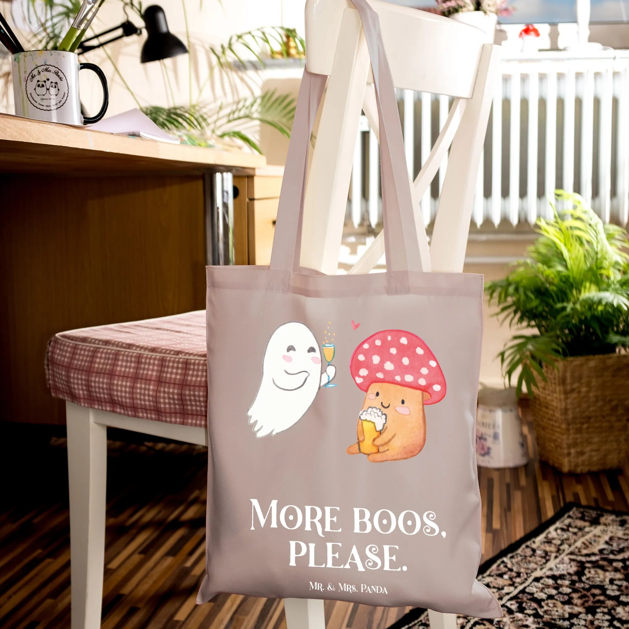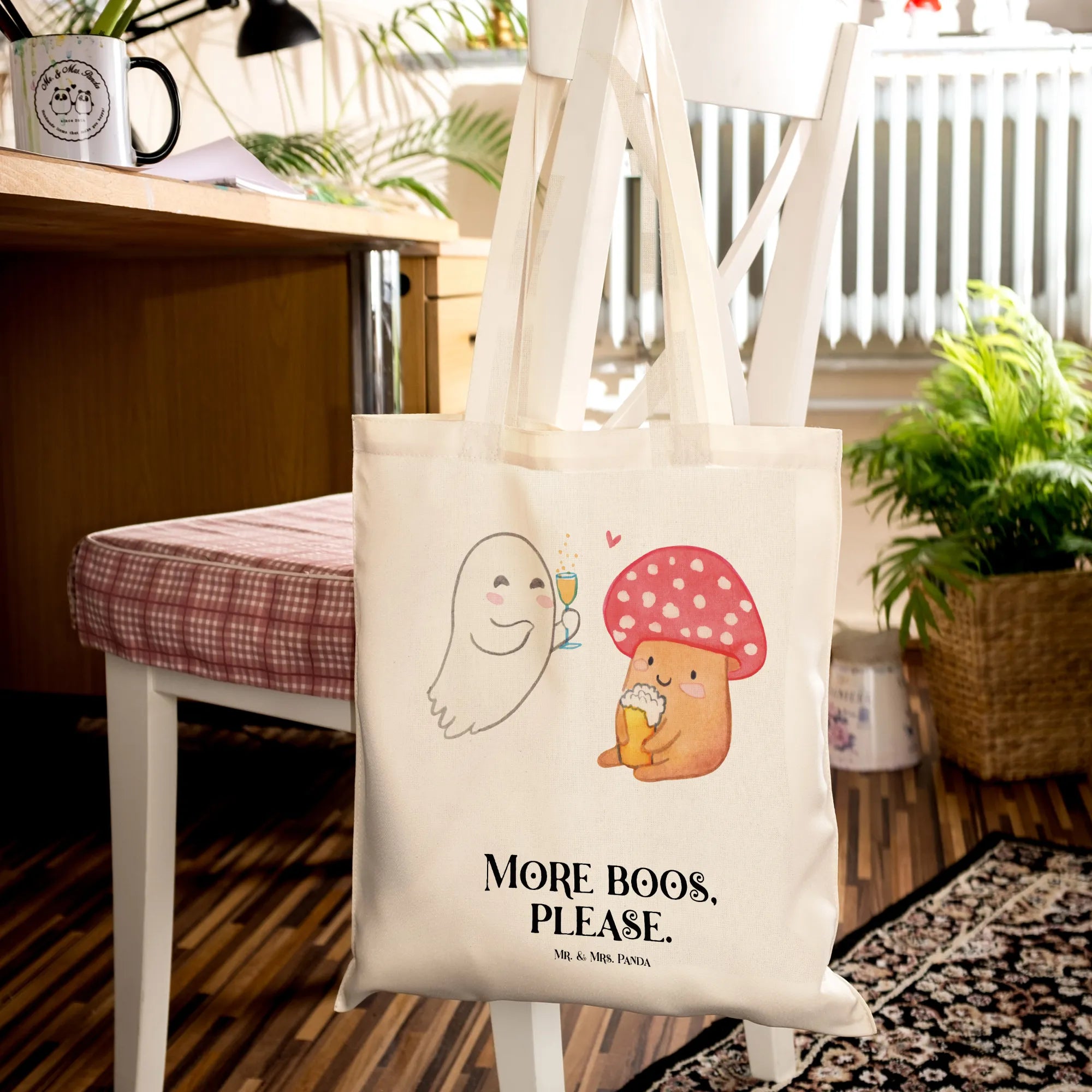Überrasche deine Lieben zur Halloween-Zeit, zum Martinssingen oder einfach so mitten im Jahr mit dieser liebevollen Tragetasche und verbreite Freude und gute Laune. Dieses außergewöhnliche Stück aus der Halloween-Kollektion von Mr. & Mrs. Panda ist nicht nur ein praktisches Accessoire, sondern auch ein echter Hingucker.