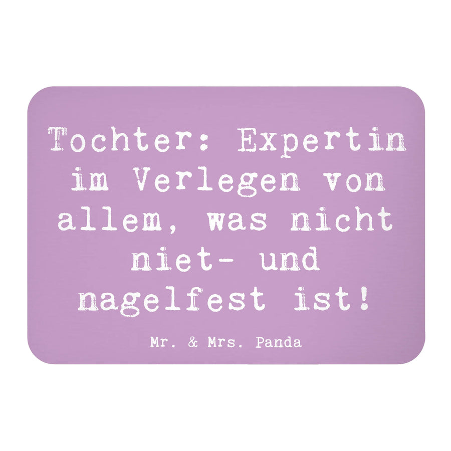 Du suchst nach einem besonderen Geschenk für Deine Tochter? Dann ist der Kühlschrankmagnet 'Tochter: Expertin im Verlegen von allem, was nicht niet- und nagelfest ist!' von Mr. & Mrs. Panda genau das Richtige!