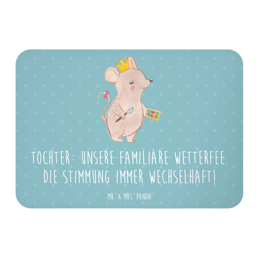 Der Kühlschrankmagnet "Tochter: Unsere familiäre Wetterfee. Die Stimmung immer wechselhaft!" aus der Kollektion Familie & Verwandte von Mr. & Mrs. Panda ist das perfekte Geschenk für alle, die eine Tochter haben, die das Herz ihrer Familie ist.