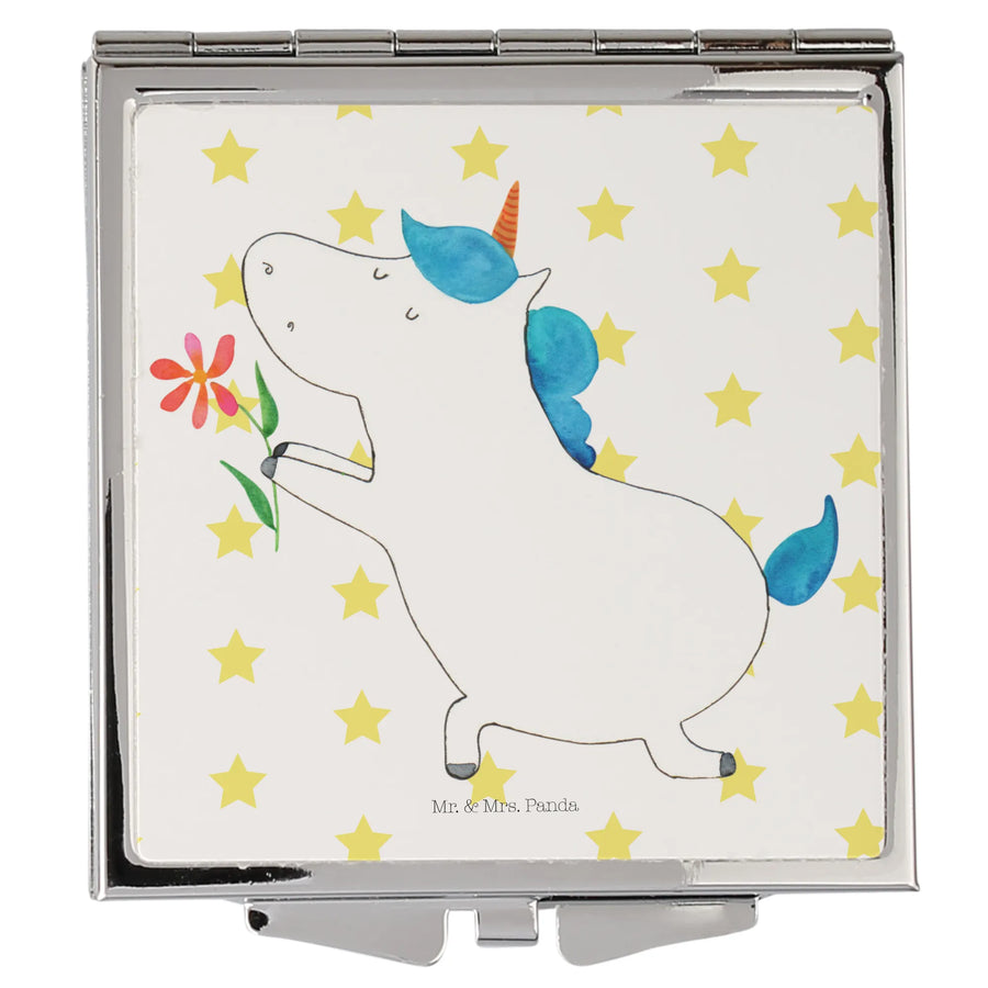 Kwadratowe lusterko do torebki jednorożec kwiat - bez napisu - Biały