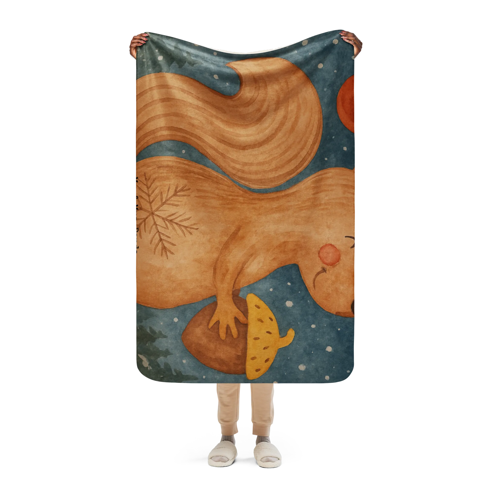 Koc Sherpa wiewiórka Boże Narodzenie Design - 130 x 155 cm - z napisem