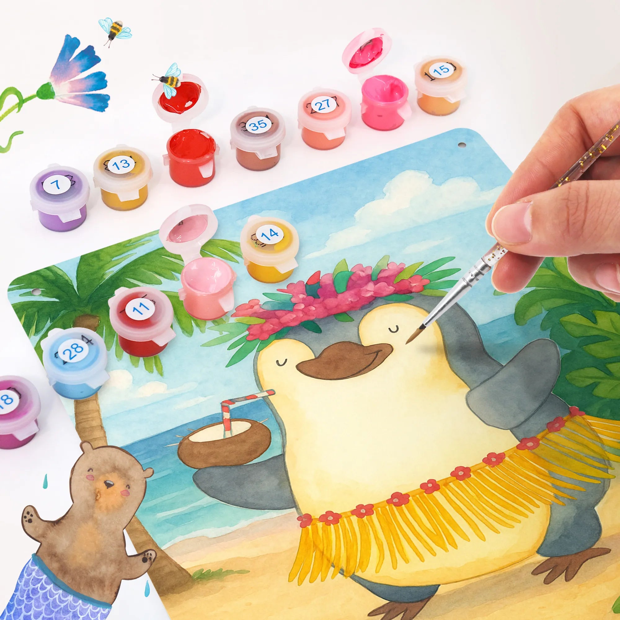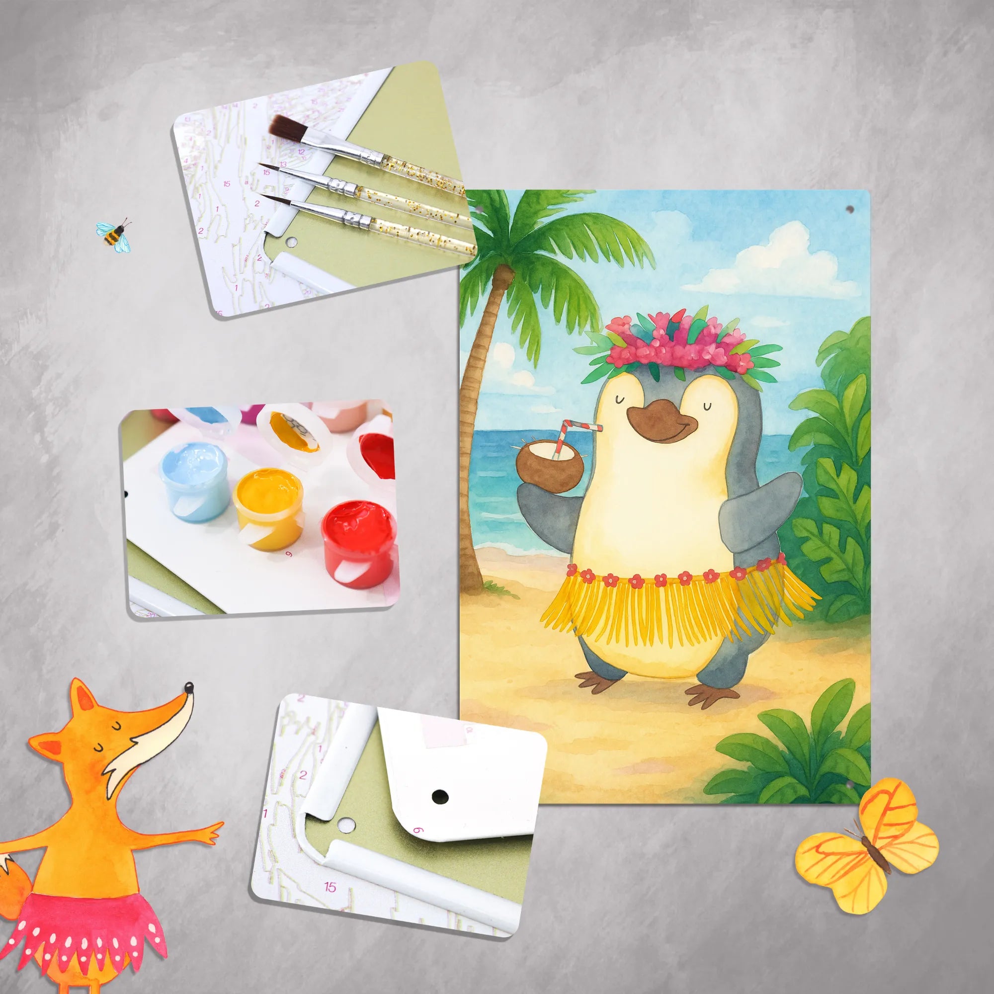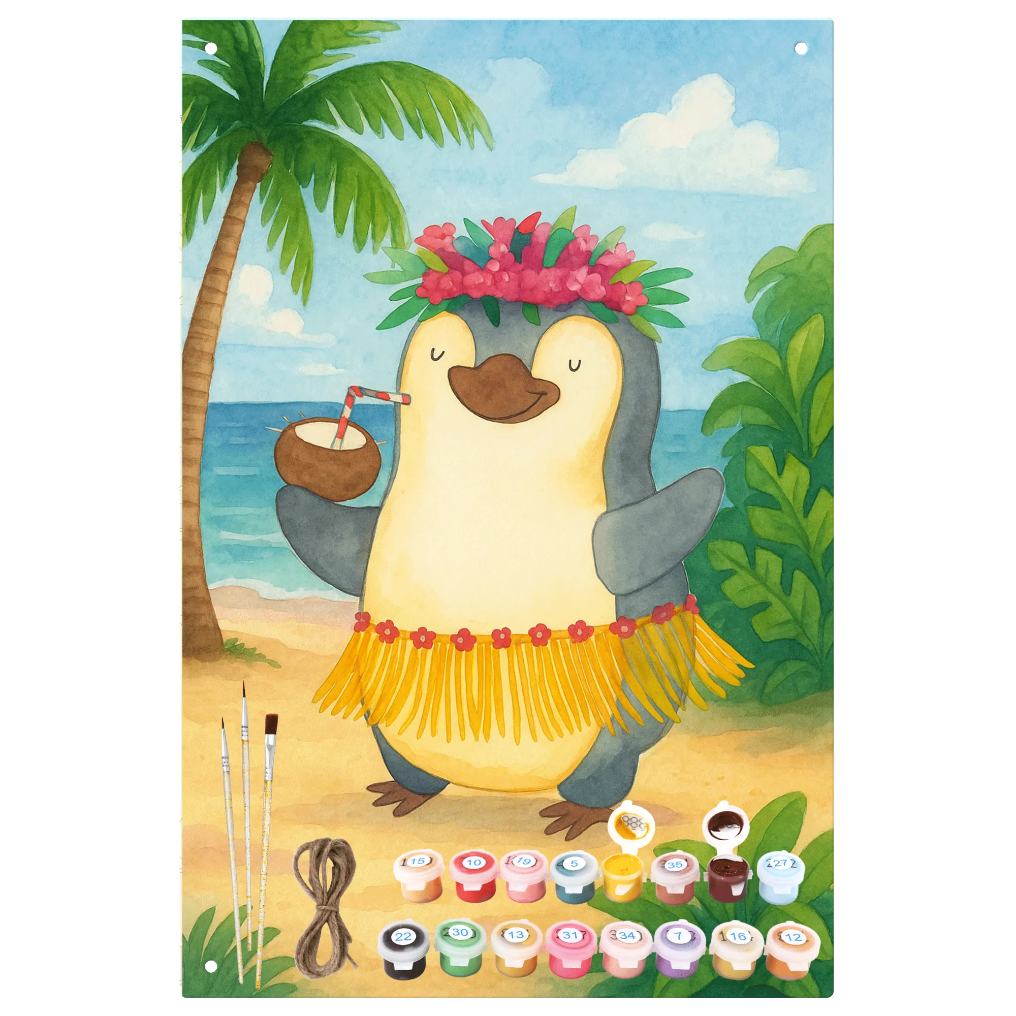 Metalowy szyld do malowania po numerach Pingwin z Kokosem Design