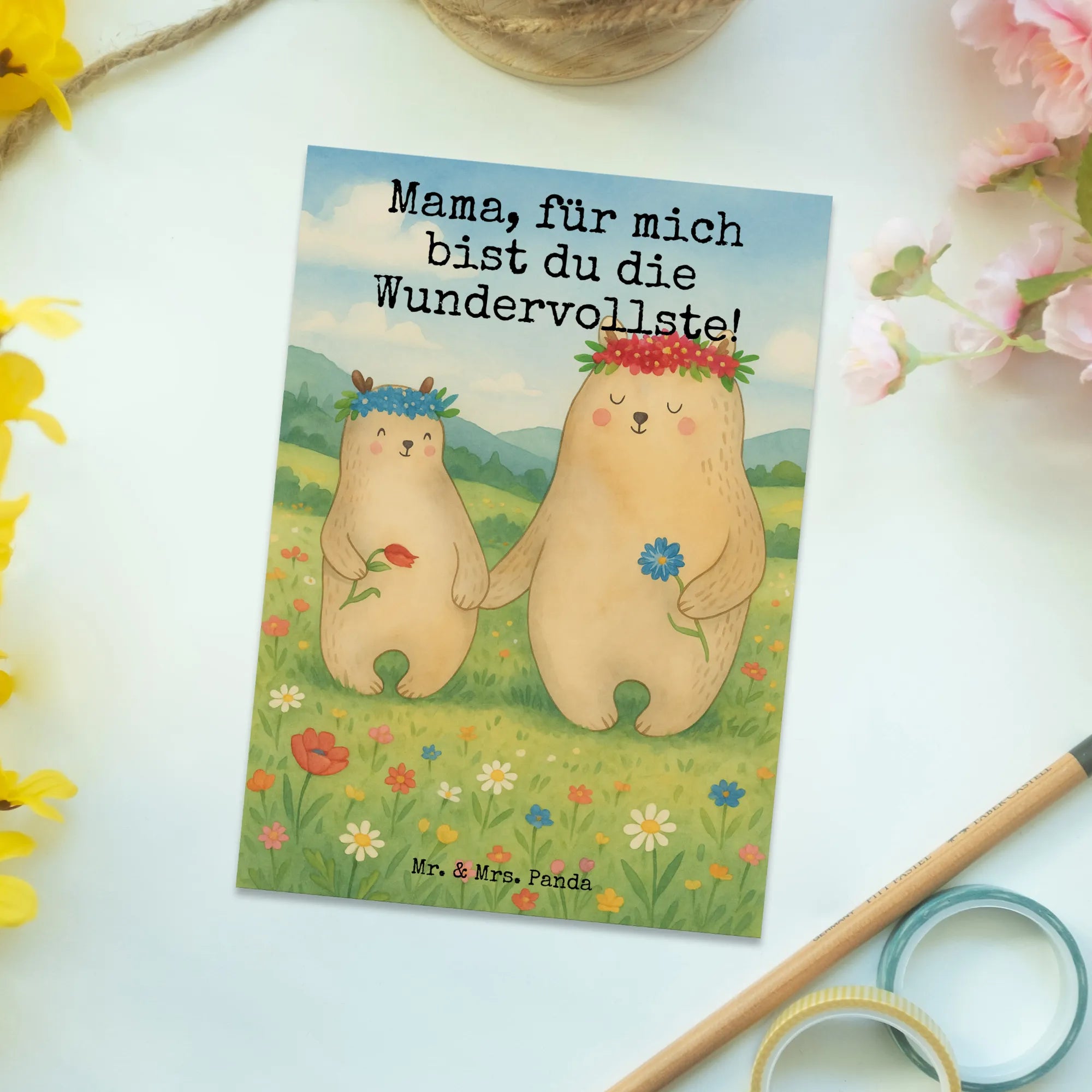 Pocztówka Niedźwiedzie z wianuszkiem Design - z napisem