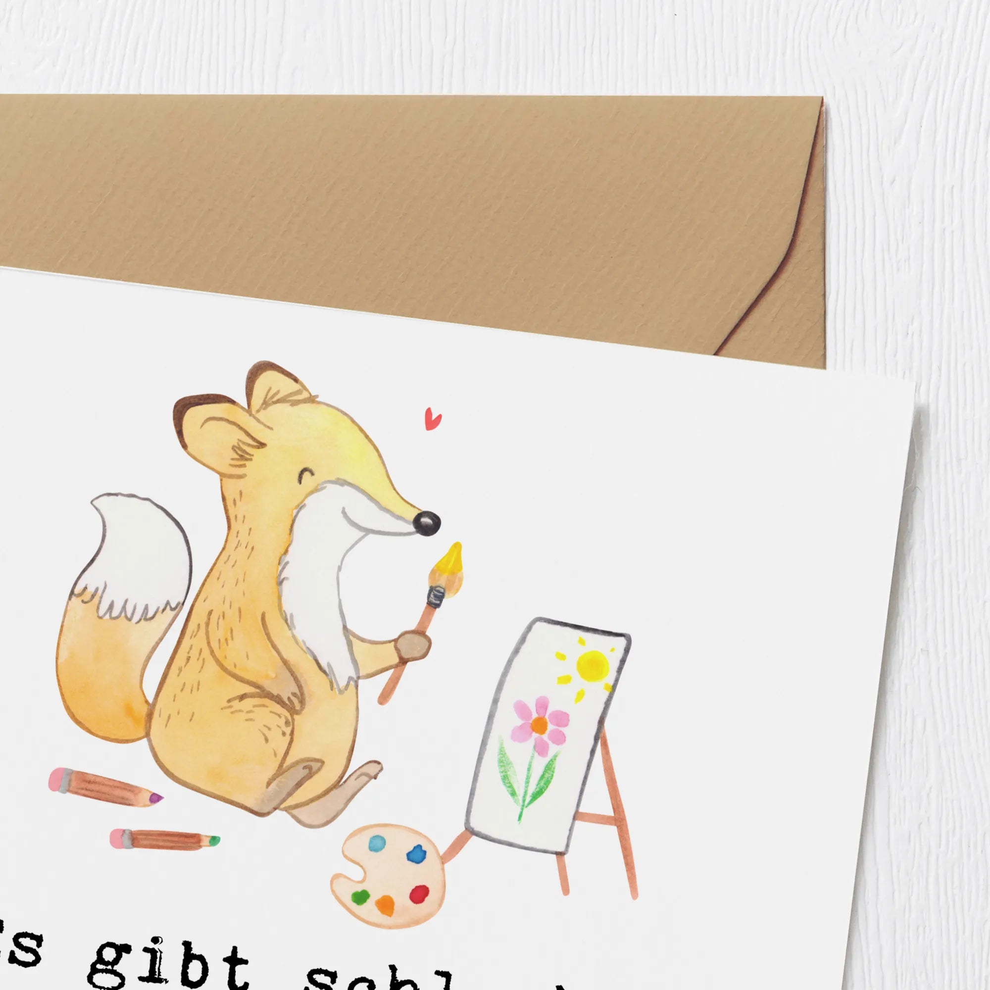 Mit einem süßen Fuchs, der eifrig an seiner Staffelei malt, zaubert diese Karte jedem ein Lächeln ins Gesicht. Der Spruch 'Es gibt schlechte Tage, und es gibt Tage, an denen ich male.' spricht für sich und unterstreicht die Liebe zur Kunst und zur Kreativität.