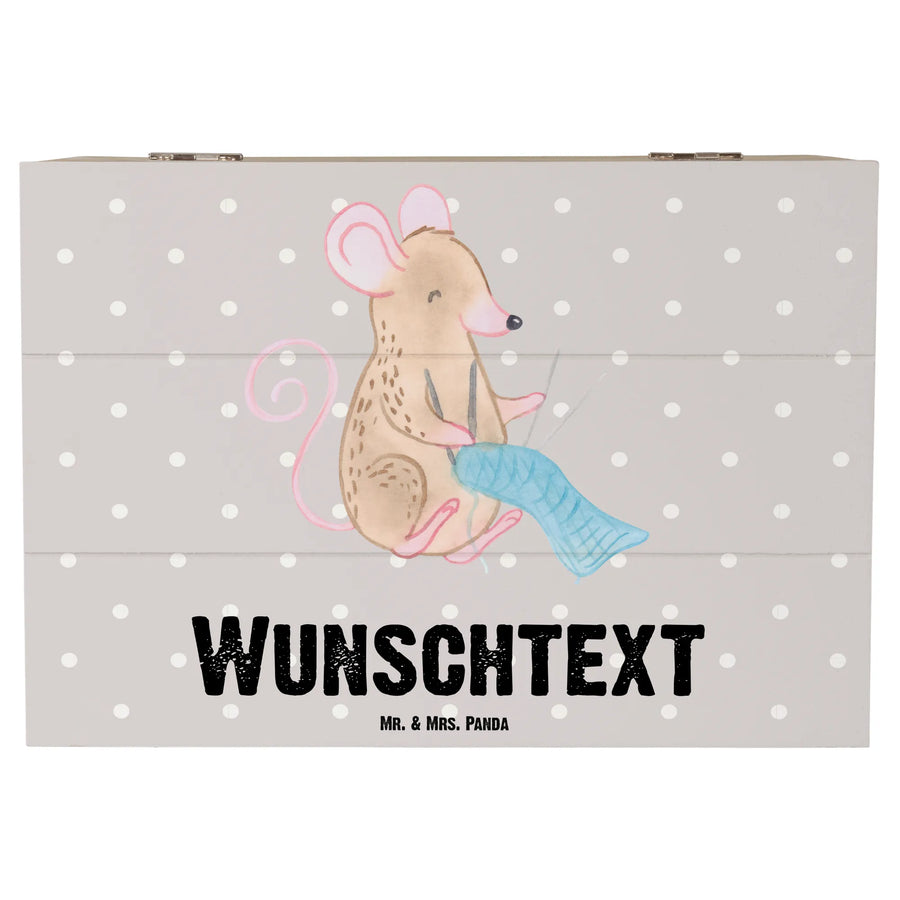 Personalizowane drewniane pudełko mysz dzierganie - 22 x 15 cm - Pastelowy szary