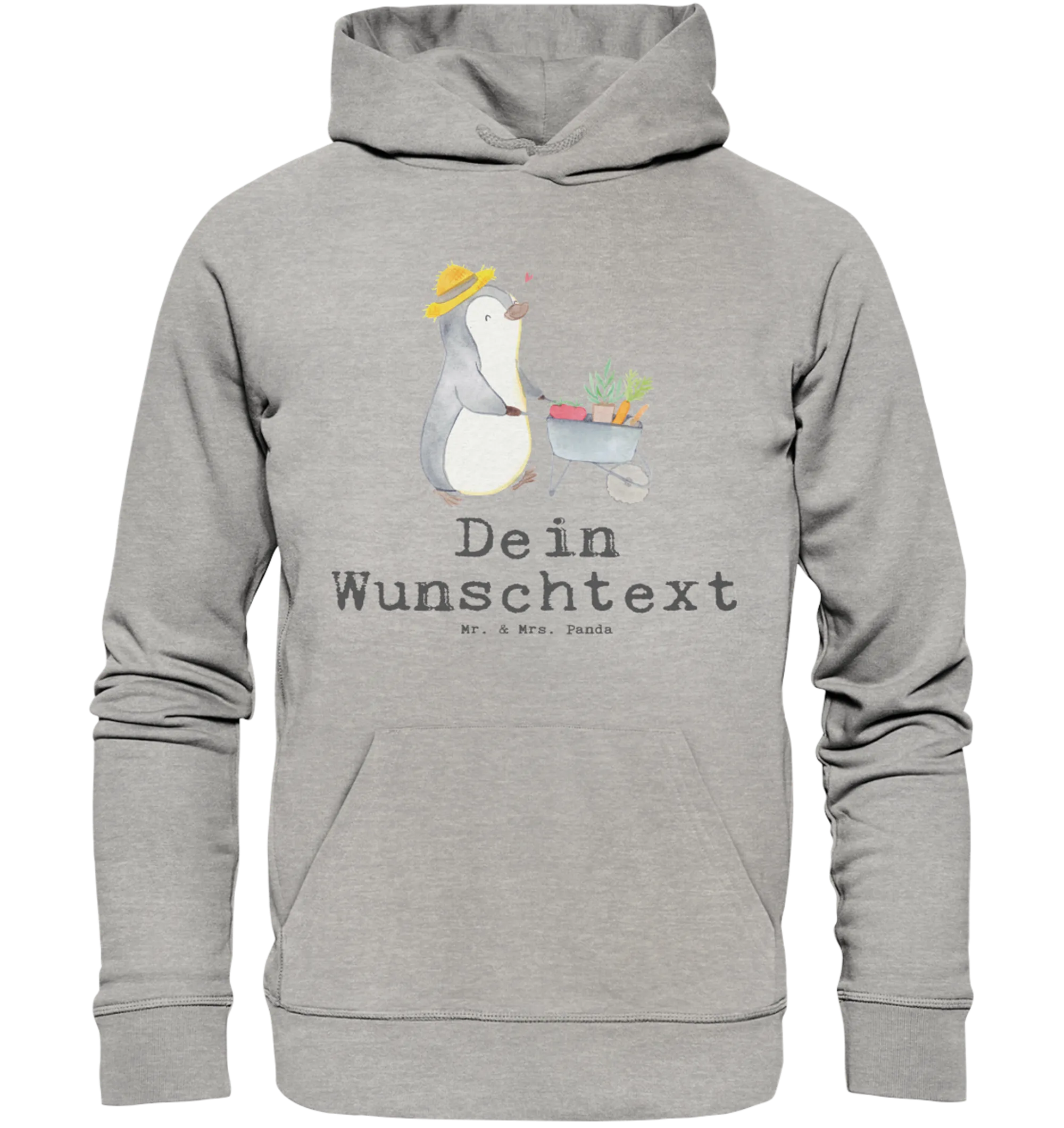 Der personalisierte Hoodie von Mr. & Mrs. Panda mit dem süßen Pinguin-Motiv ist das perfekte Geschenk für alle, die das Gärtnern lieben! Stellen wir uns vor: Ein kleiner, quirliger Pinguin mit einem Sonnenhut, der stolz eine Schubkarre voller frischem Gemüse schiebt. Dieser Hoodie bringt garantiert ein Lächeln auf dein Gesicht, egal ob du im eigenen Garten arbeitest oder einfach nur dein grünes Daumen-Hobby hörbar machen möchtest. Der Hoodie ist nicht nur super gemütlich und flauschig, sondern auch aus hochwertiger Bio-Baumwolle gefertigt, die dir ein angenehm weiches Tragegefühl gibt.