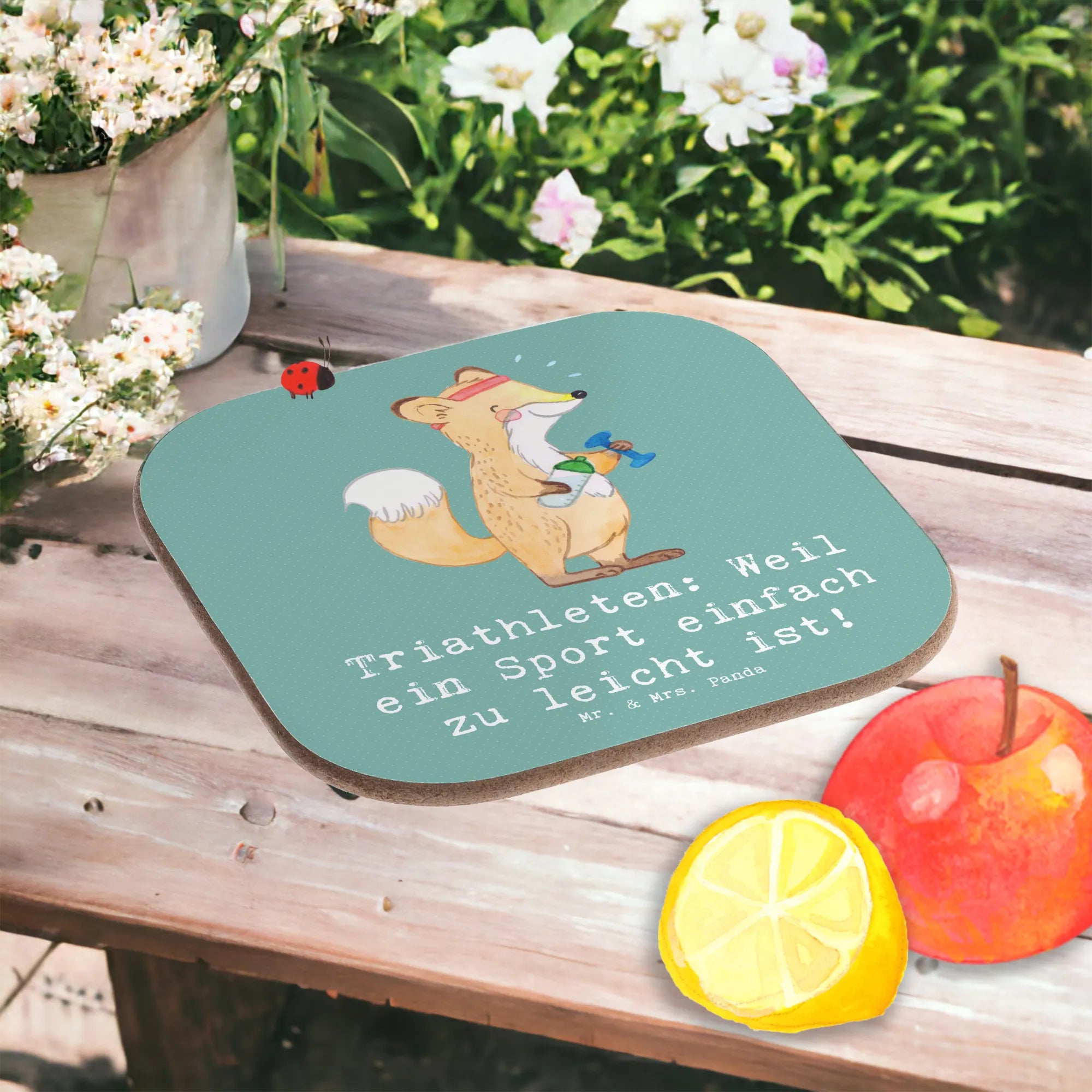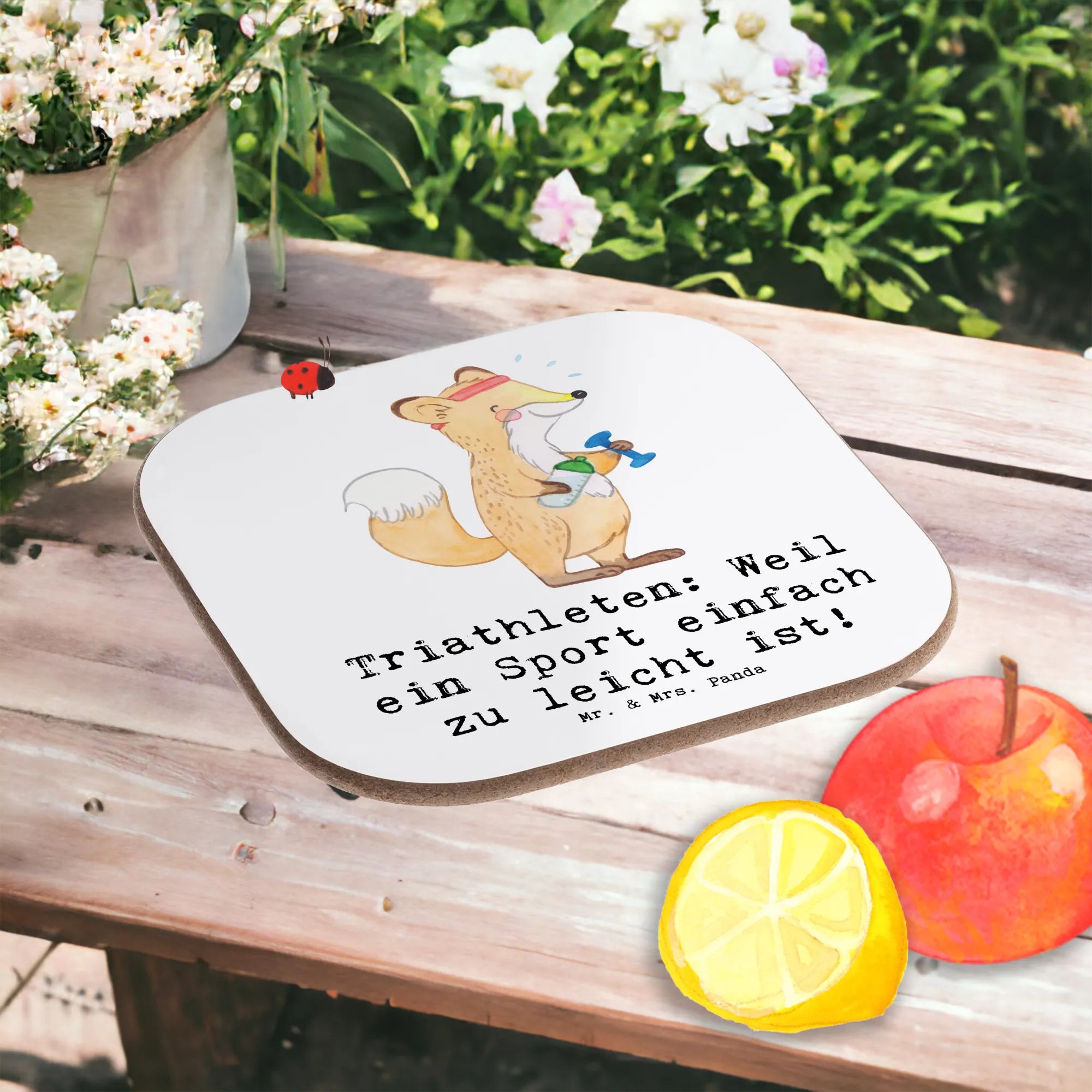 Mach jeden Schluck zu einem Erlebnis und zeige deine Begeisterung für den Triathlon mit diesem fantastischen Untersetzer von Mr. & Mrs. Panda. Er passt perfekt zu deiner Tasse, deinem Bier oder deinem Getränk aus der perfekten Sportgemeinschaft!