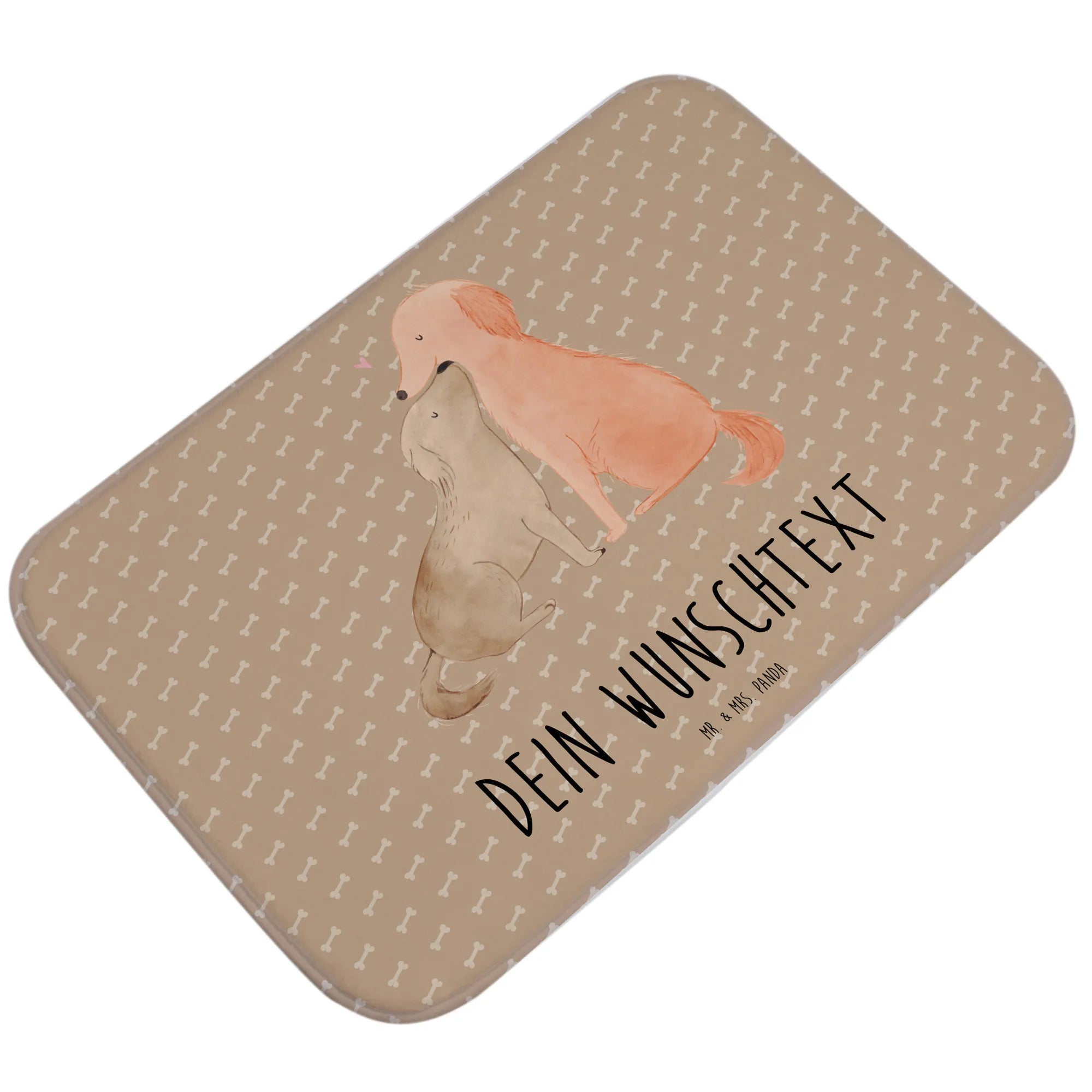 Der personalisierte Badvorleger mit dem niedlichen Hundemotiv ‚Hunde Liebe‘ von Mr. & Mrs. Panda ist das perfekte Geschenk für alle Hundeliebhaber und Hundebesitzer! Seine fluffige Oberfläche und die hervorragende Saugfähigkeit machen ihn zu einem absoluten Must-have für jedes Badezimmer. Ob für den eigenen Gebrauch oder als liebevolles Geschenk – dieser Badvorleger zaubert jedem ein Lächeln ins Gesicht. Das süße Design zeigt zwei kuschelnde Hunde und verleiht Deinem Badezimmer eine warme und einladende Atmosphäre. Mit einem personalisierten Namen oder Wunschtext wird er zu einem ganz individuellen Stück, das die innigen Bande zur besten Fellnase widerspiegelt.