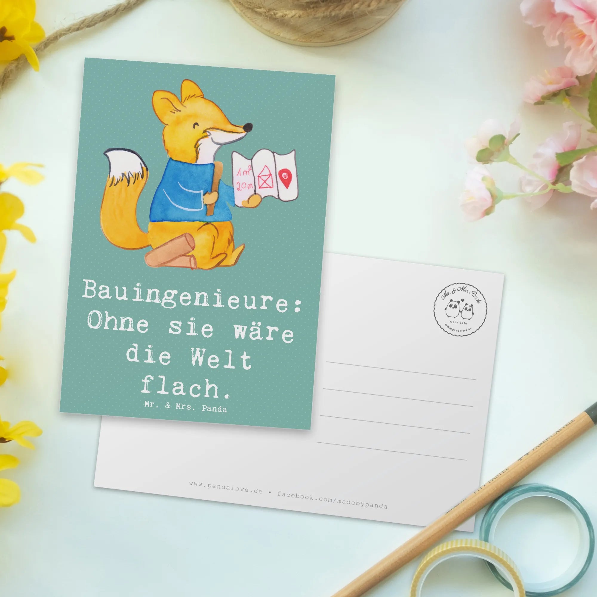 Postkarte Bauingenieure: Ohne sie wäre die Welt flach. – Mr. & Mrs. Panda