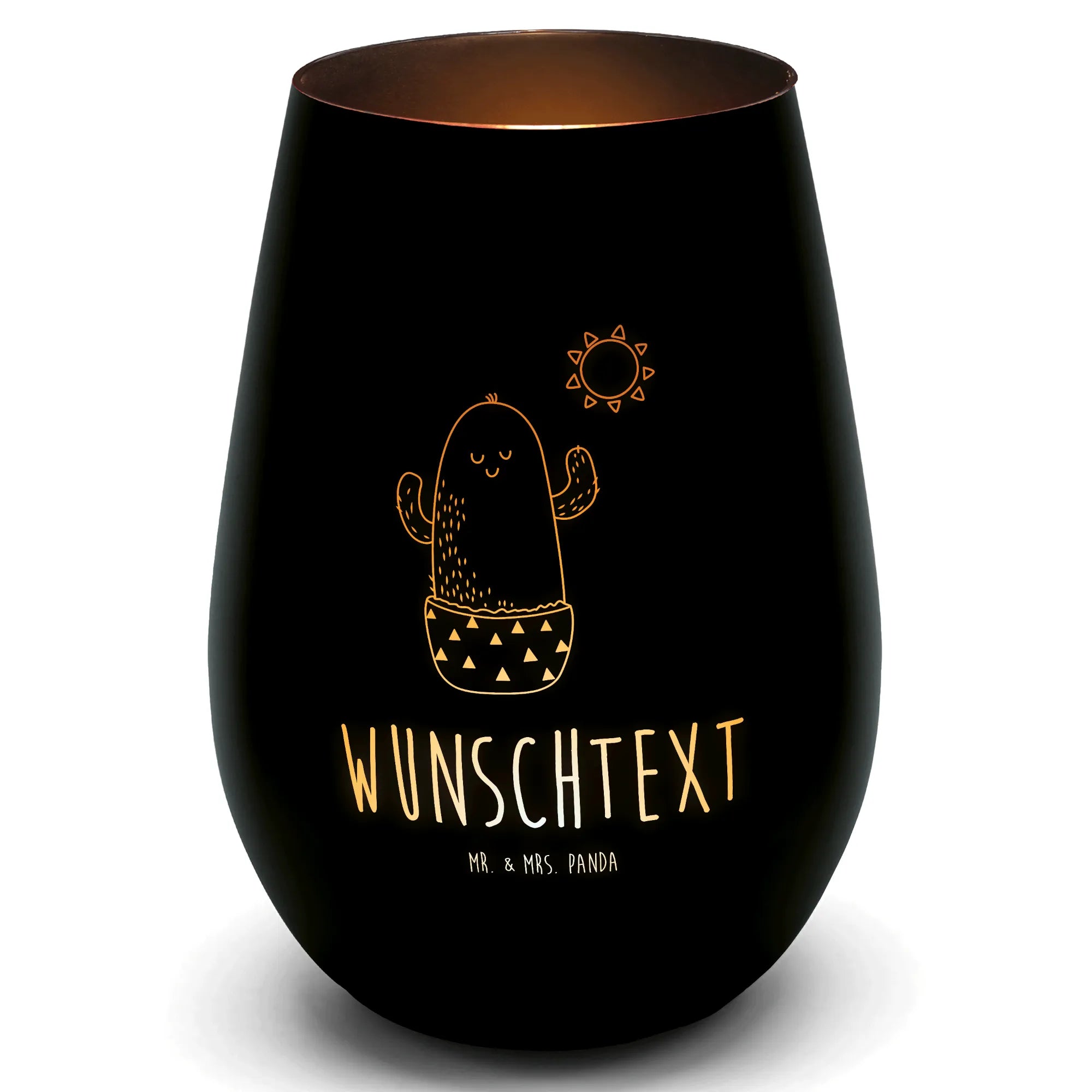 Złoty świecznik spersonalizowany Kaktus Słońce - Czarny
