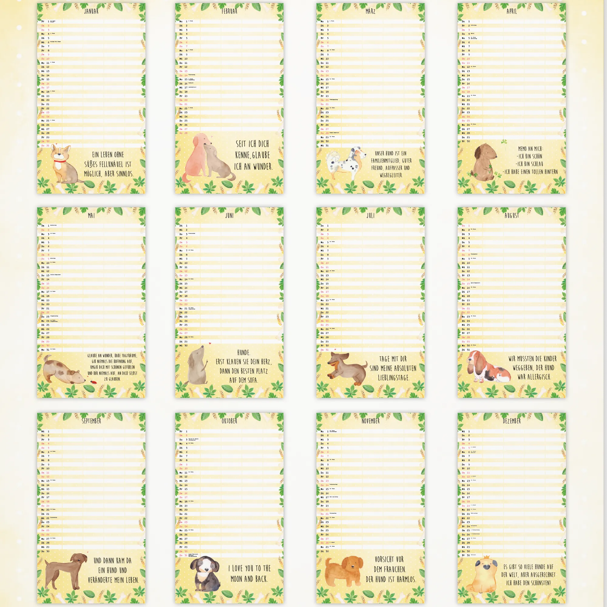 Kalendarz rodzinny 2026 Hund Collection