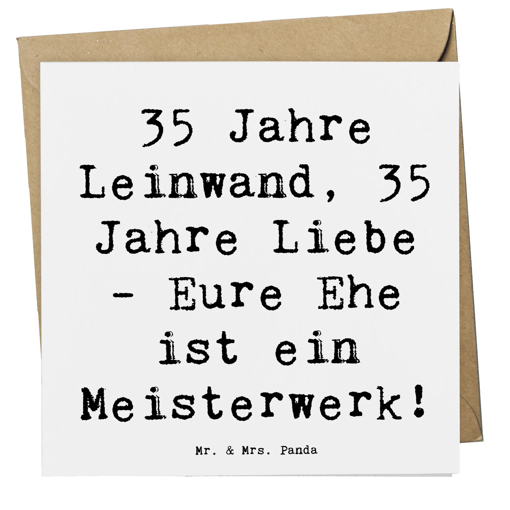 Du bist auf der Suche nach dem perfekten Geschenk zum 35. Hochzeitstag? Dann ist die Deluxe Karte "35. Hochzeitstag Leinwandhochzeit" aus der Hochzeit Kollektion von Mr. & Mrs. Panda genau das Richtige für dich! Diese wunderschöne und besonders hochwertige quadratische Karte wird jeden beschenken, der die Liebe feiert und ihren Hochzeitstag gebührend in Erinnerung rufen möchte. Sie bietet auf der Vorderseite einen einzigartigen und liebevollen Spruch: "35 Jahre Leinwand, 35 Jahre Liebe - Eure Ehe ist ein Meisterwerk!". Diese Botschaft spricht Herzen an und erinnert daran, wie wertvoll die gemeinsamen Jahre sind.
