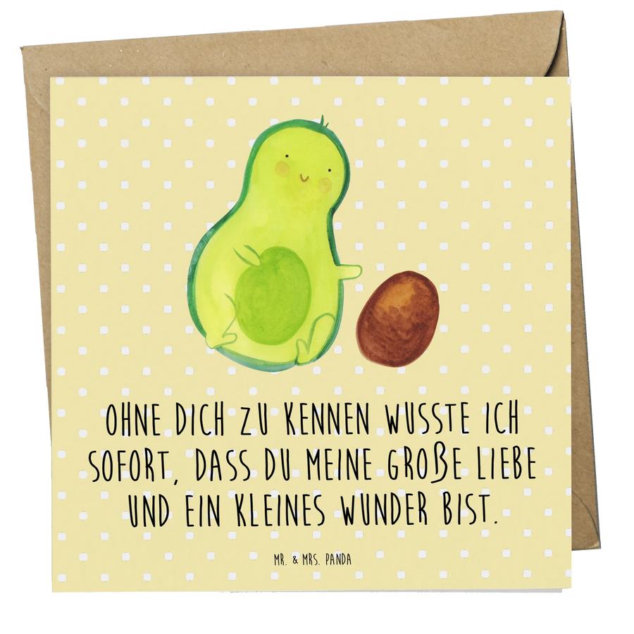 Entdecke die perfekte Grußkarte für alle Freunde, die ein kleines Wunder im Leben feiern möchten! Unsere Deluxe Karte mit dem entzückenden Motiv "Avocado rollt Kern" aus der Avocado-Kollektion von Mr. & Mrs. Panda ist nicht nur ein wunderschönes Design, sondern auch ein Ausdruck von Liebe.