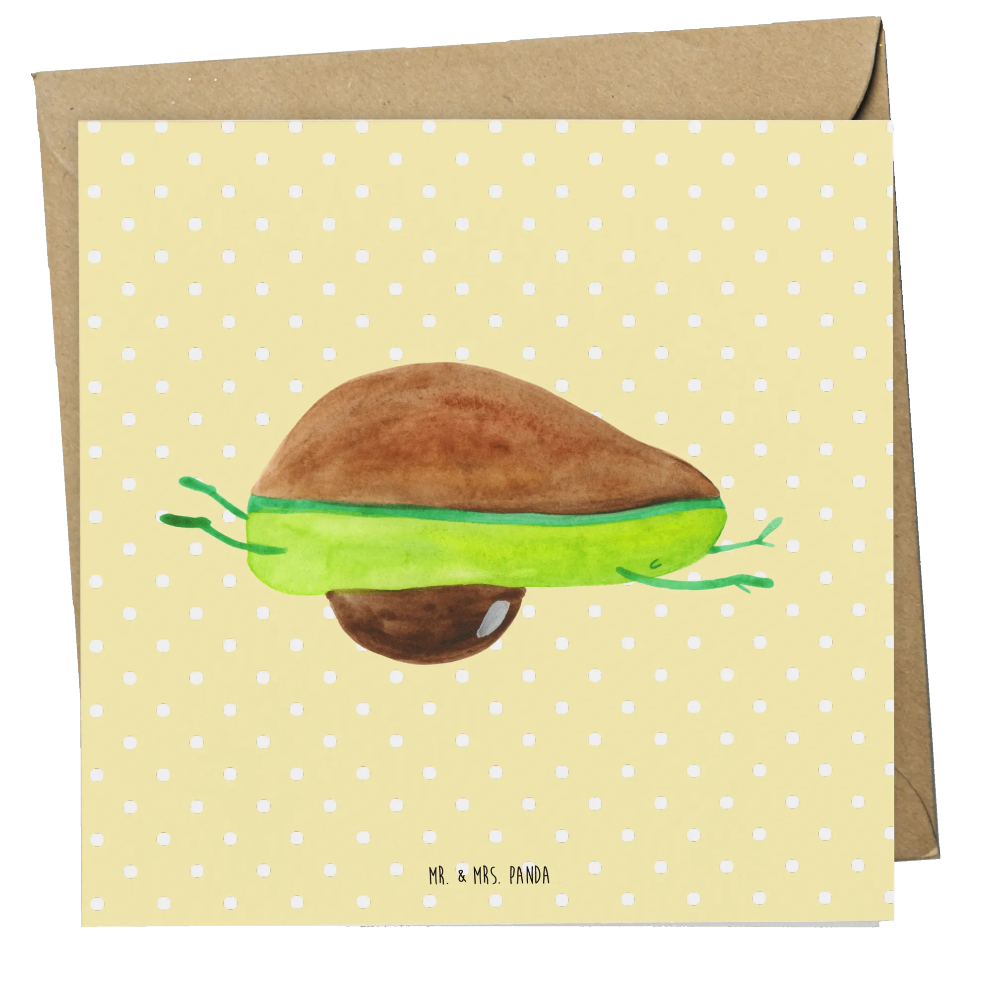 Die Deluxe Karte Avocado Yoga aus der Avocado-Kollektion von Mr. & Mrs. Panda ist das perfekte Geschenk für all die veganen, gesundheitsbewussten und lebensfrohen Menschen in Deinem Leben. Diese hochwertige, quadratische Klappkarte hat Maße von 140 mm x 140 mm und ist aus edlem 300 Gramm Karton gefertigt, der sich nicht nur angenehm anfühlt, sondern auch besonders stabil ist.