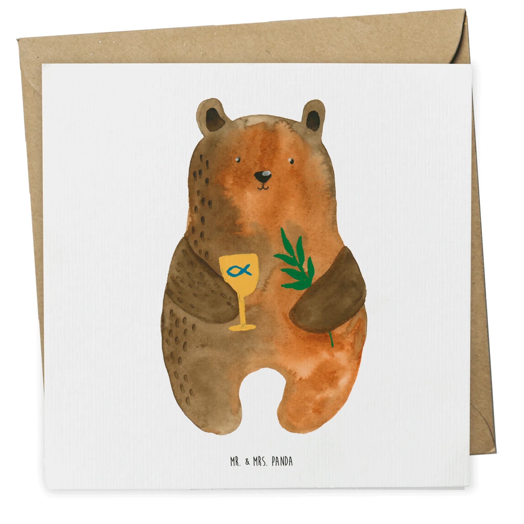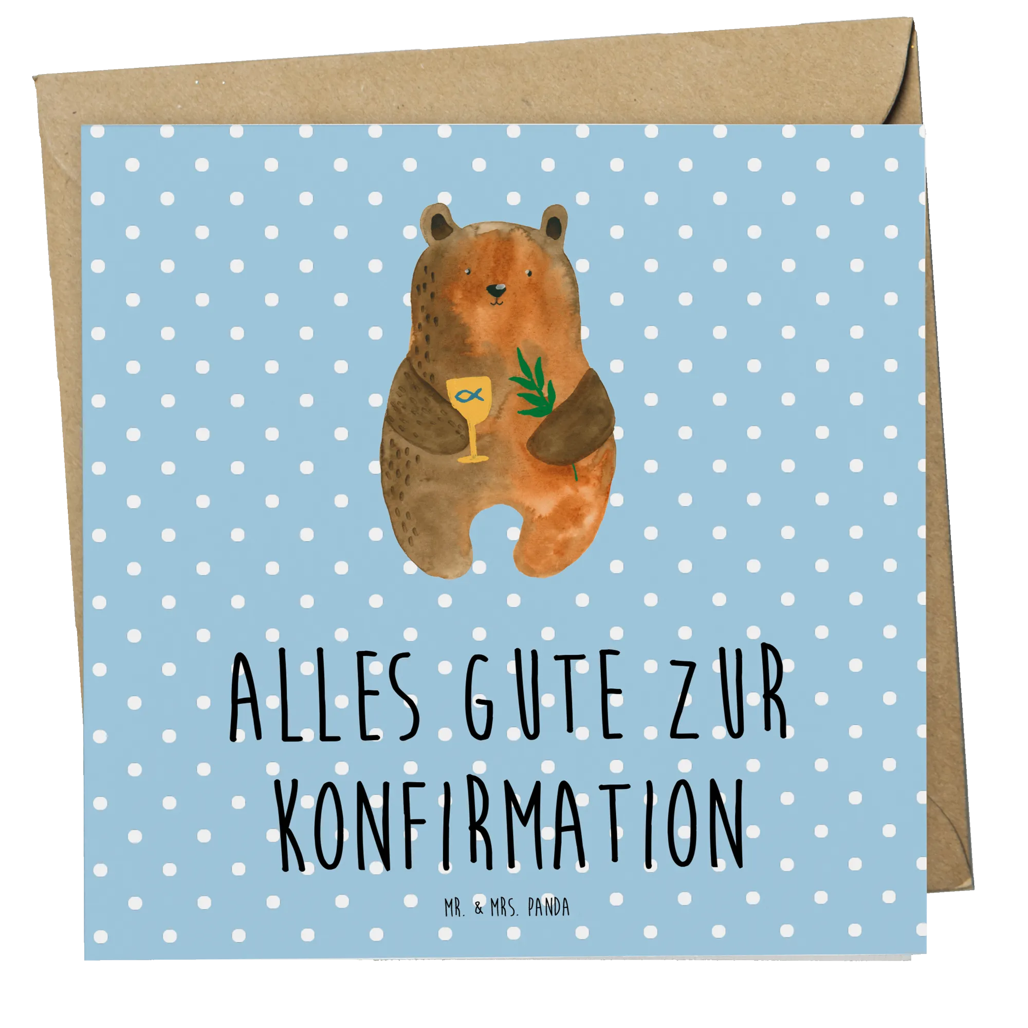 Mit dem herzigen Motiv eines Bären, der einen goldenen Kelch in einer Hand und einen Zweig in der anderen hält, ist diese Karte nicht nur eine schöne Geste, sondern auch ein unverwechselbares Accessoire zu einem der wichtigsten Ereignisse im Leben eines jungen Menschen.