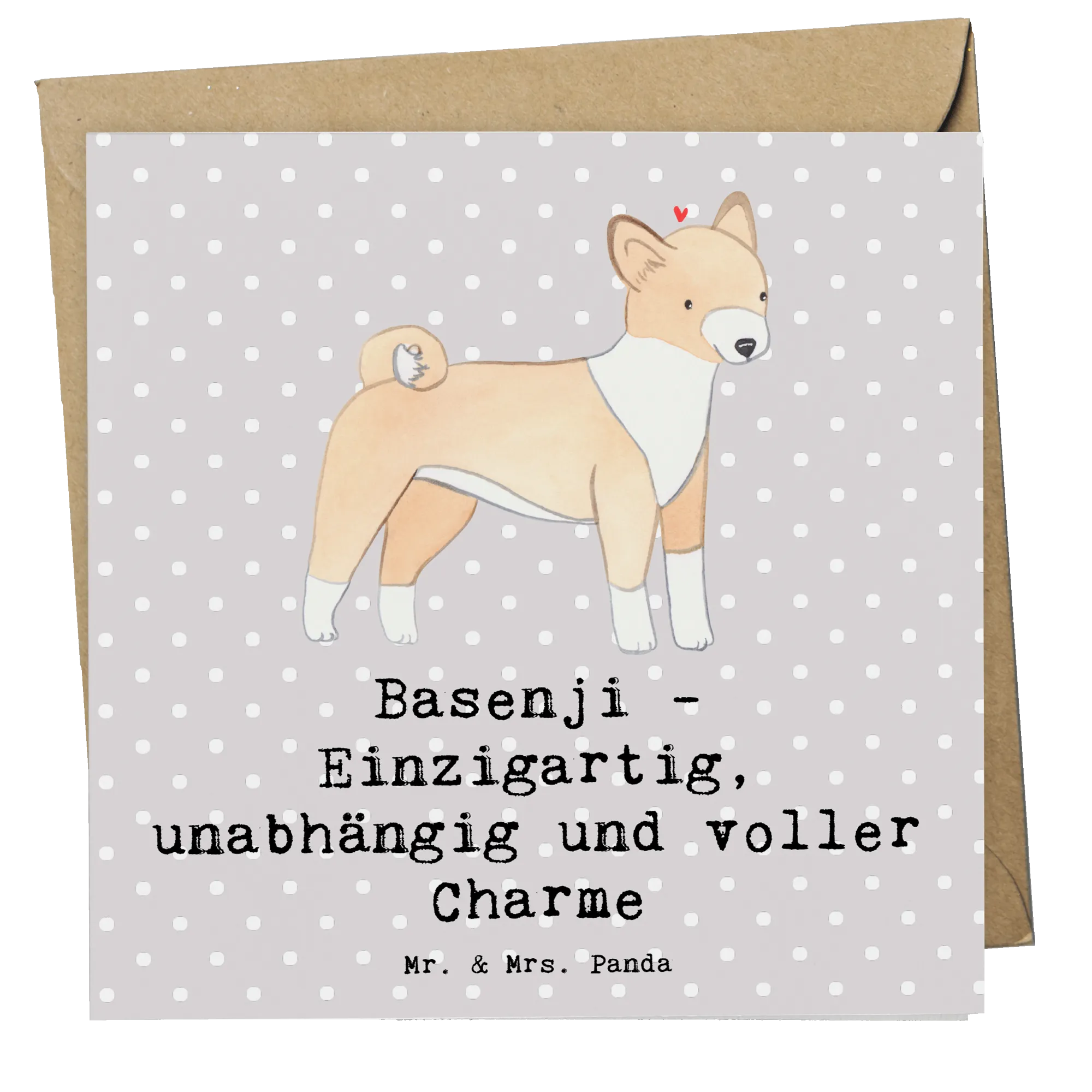 Deine Grüße werden mit dieser Karte in Erinnerung bleiben und in den Herzen der Menschen weiterleben, die sie erhalten. Lass Deinen Worten Flügel wachsen und verschenke Freude mit der Deluxe Karte Basenji von Mr. & Mrs. Panda!
