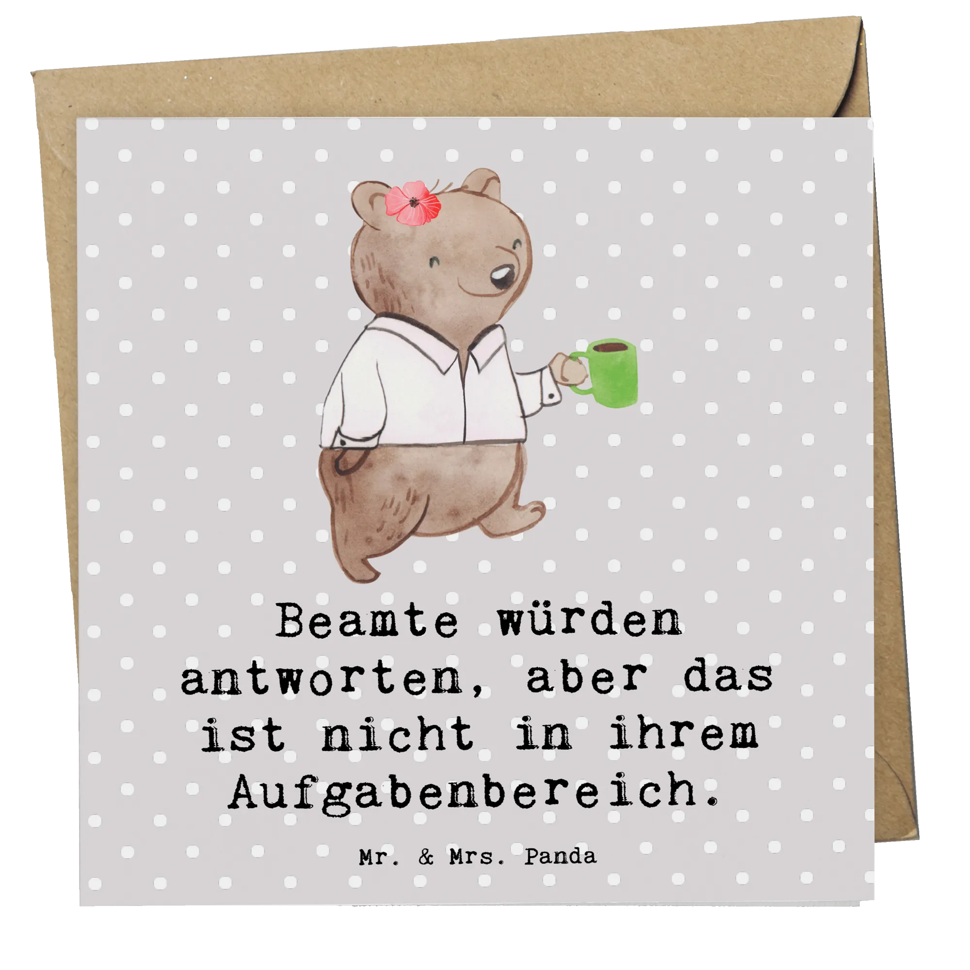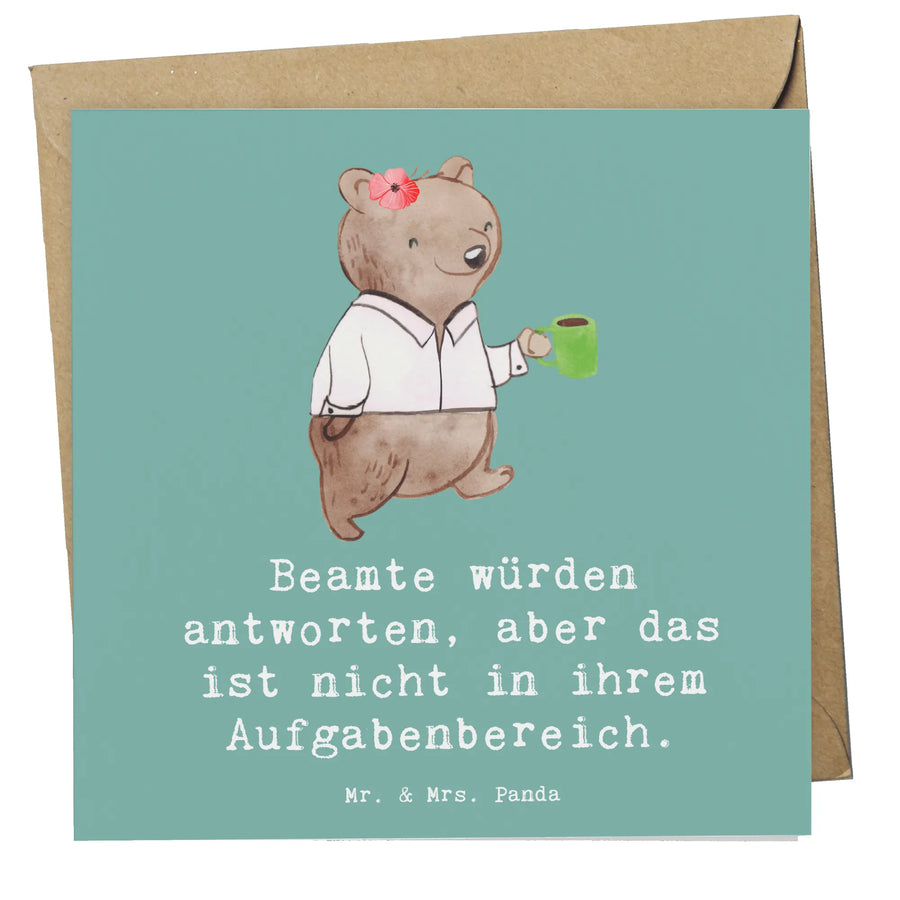 Die Deluxe Karte "Beamtin" aus der liebevollen Berufe Kollektion von Mr. & Mrs. Panda ist das perfekte Geschenk für all jene, die in der Welt des öffentlichen Dienstes tätig sind. Mit ihrem charmanten Design und dem witzigen Slogan "Beamte würden antworten, aber das ist nicht in ihrem Aufgabenbereich" bringt sie ein Lächeln auf die Gesichter. Egal, ob Du sie zum Geburtstag, zur Hochzeit, zur Verabschiedung oder sogar zu einem Berufsjubiläum verschenken möchtest, diese Karte ist die ideale Wahl.