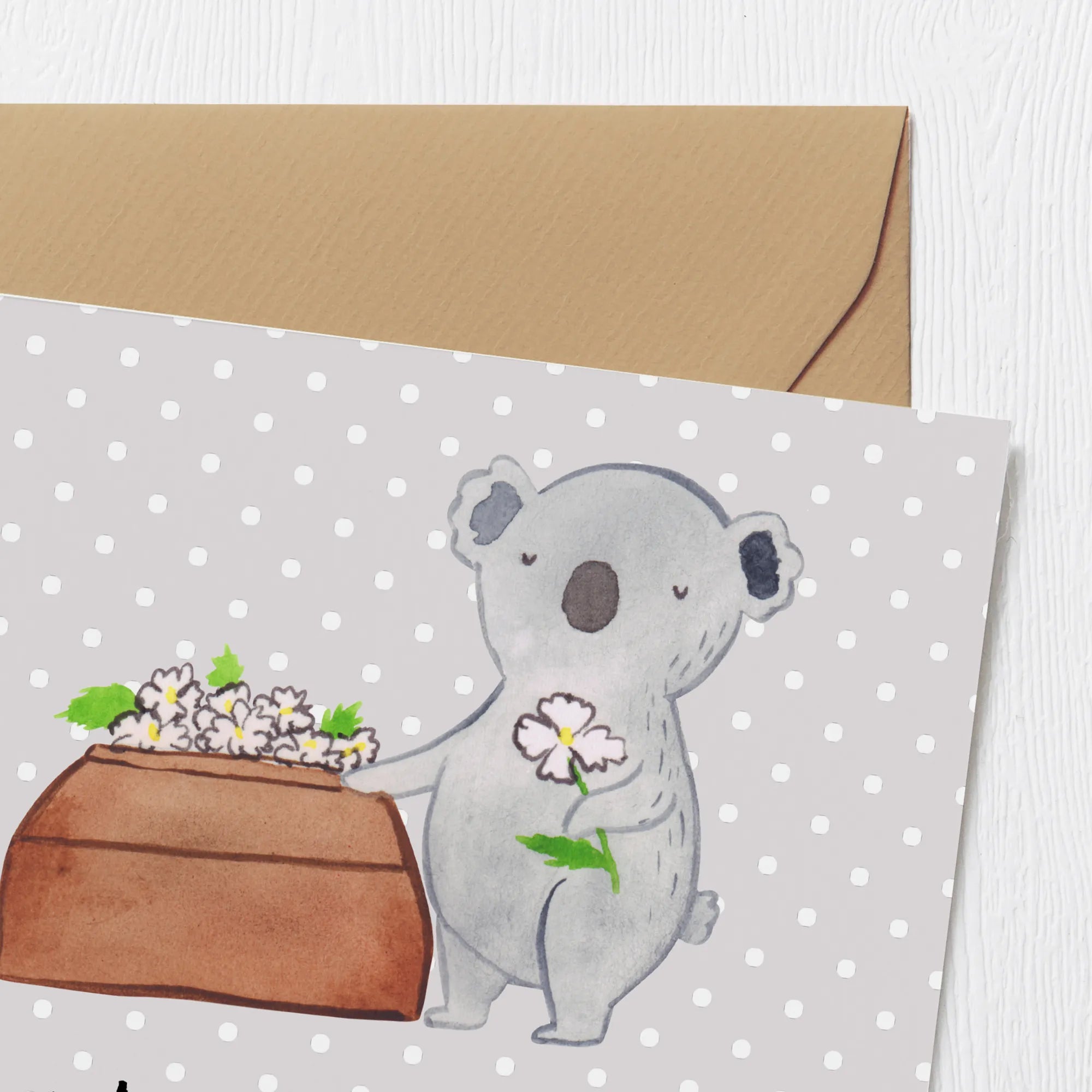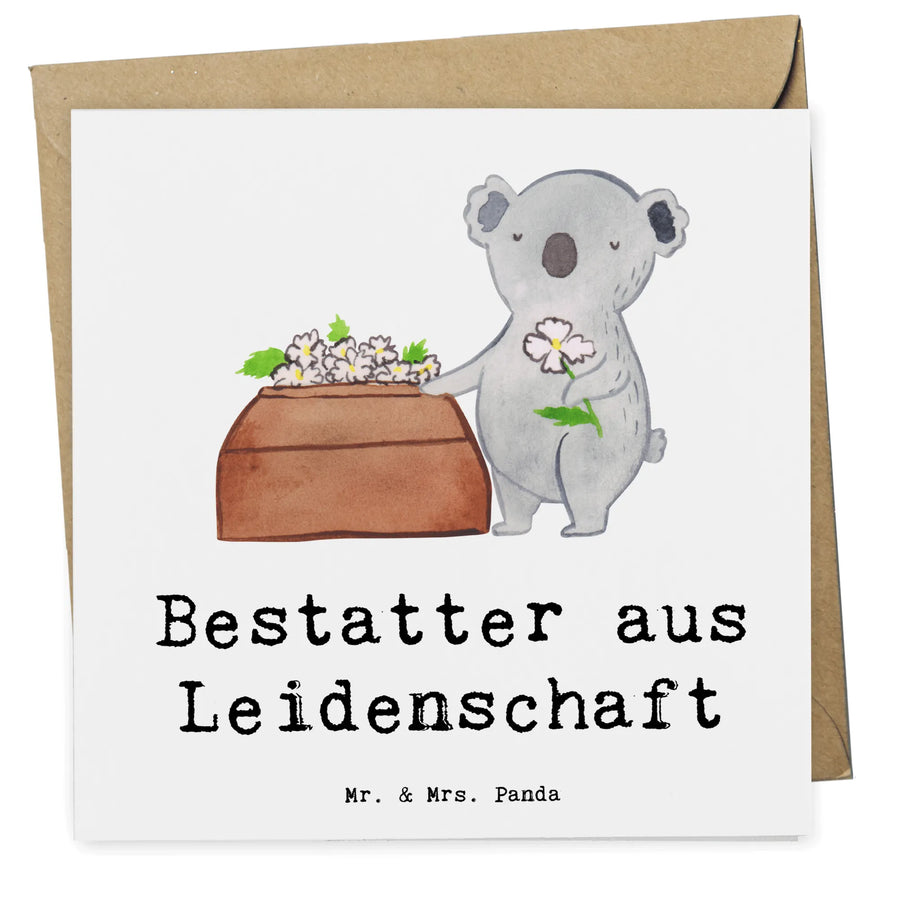 Das liebevoll gestaltete Motiv zeigt einen niedlichen Koala, der ehrfürchtig vor einem Sack mit Blumen steht. Der dazugehörige Spruch „Bestatter aus Leidenschaft“ verleiht der Karte eine persönliche Note und macht sie zu einem idealen Begleiter für viele Anlässe. Denn in diesem Beruf zeigt man sich nicht nur fachkundig, sondern auch einfühlsam. So wird die Karte zum Ausdruck der Wertschätzung für die Profession und die Menschen, die in ihr arbeiten.