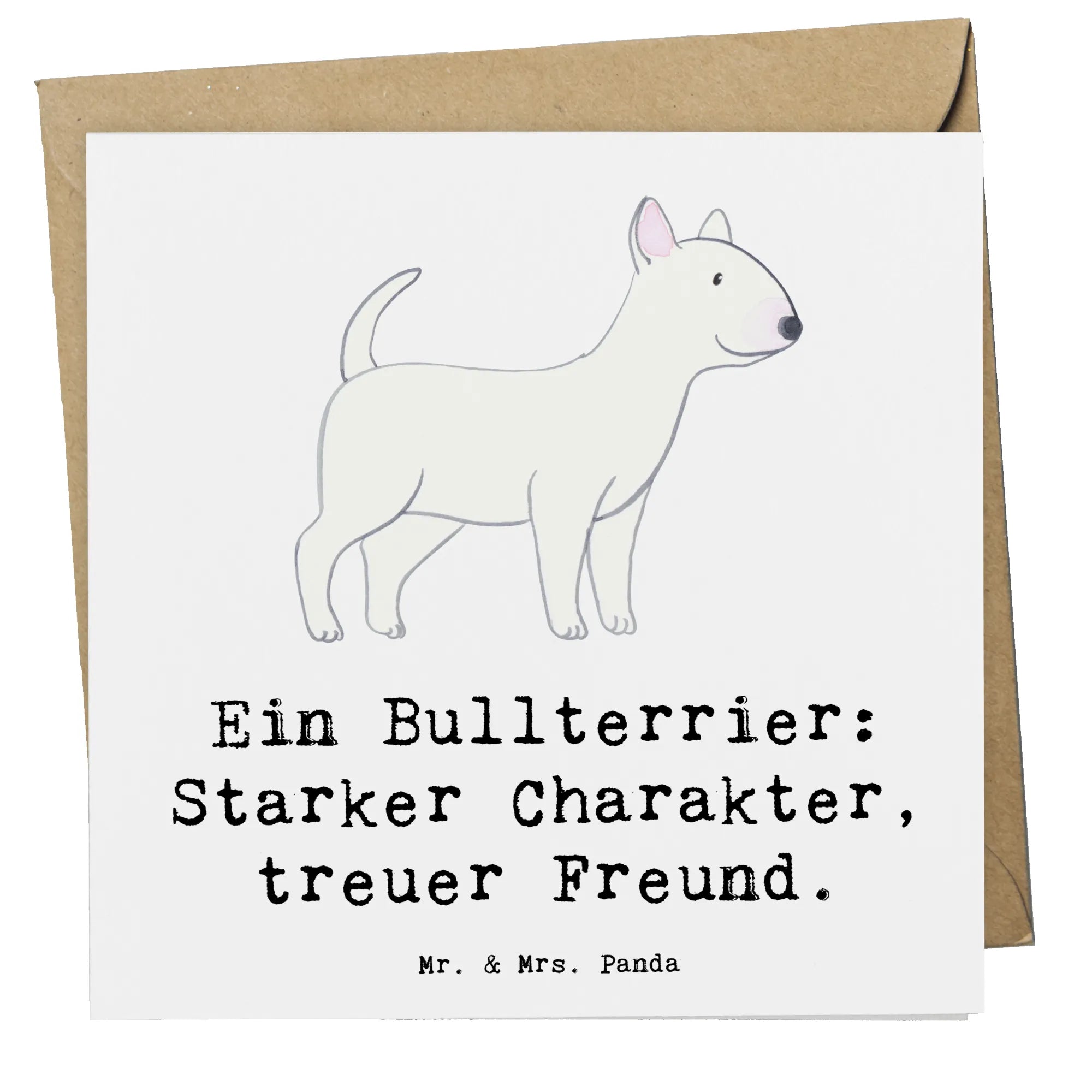 Mit einem eindrucksvollen Spruch auf der Vorderseite, "Ein Bullterrier: Starker Charakter, treuer Freund", ist diese Karte ideal, um Glückwünsche aller Art zu übermitteln. Ob zum Geburtstag, zur Hochzeit, bei einem Jubiläum oder einfach als kleine Freude zwischendurch: Diese Karte wird mit Sicherheit ein Lächeln zaubern.