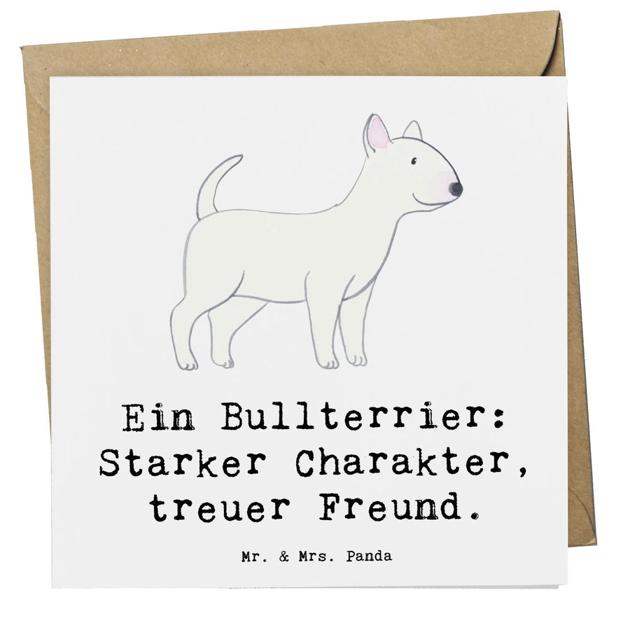 Entdecke die perfekte Deluxe Karte mit Bullterrier-Motiv aus der Hunderassen-Kollektion von Mr. & Mrs. Panda! Diese wunderschöne und besonders hochwertige quadratische Karte ist nicht nur ein echter Hingucker, sondern auch ein perfektes Geschenk für jeden Hundefan.