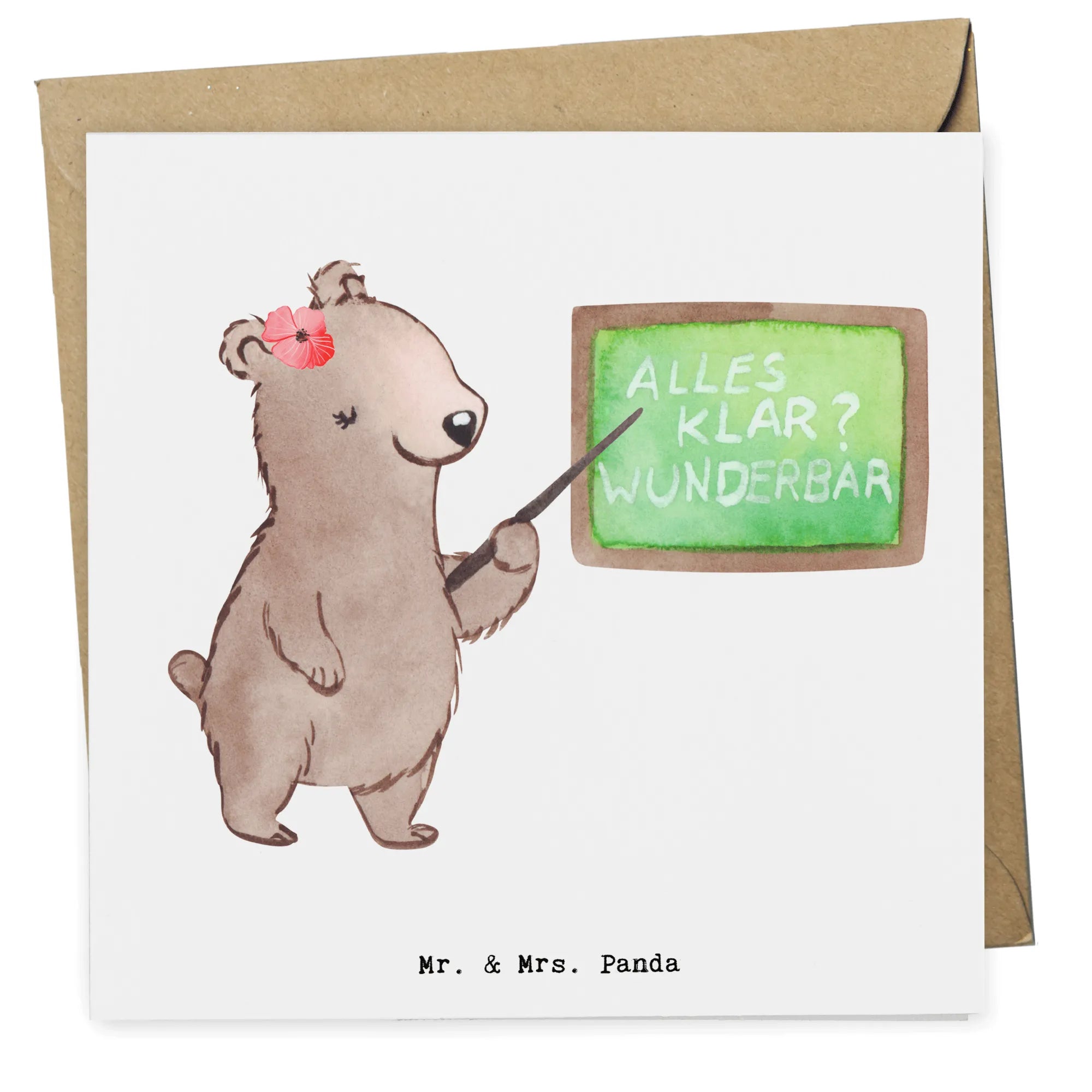 Die Deluxe Karte "Deutschlehrerin mit Herz" aus der Berufe Kollektion von Mr. & Mrs. Panda ist das perfekte Geschenk für alle, die sich bei ihrer Deutschlehrerin oder ihrem Deutschlehrer bedanken möchten. Diese wunderschöne und hochwertige quadratische Karte besticht durch ein liebevoll handgezeichnetes Motiv, das eine engagierte und leidenschaftliche Deutschlehrerin zeigt. Der kleine Bär, der vor einer Schultafel steht, vermittelt die Botschaft, dass Deutschunterricht alles andere als trocken und langweilig ist! Diese liebevolle Karte ist die ideale Möglichkeit, um Deinen Dank auszudrücken, egal ob zum Geburtstag, zur Hochzeit, zum Jubiläum oder zum Abschied.