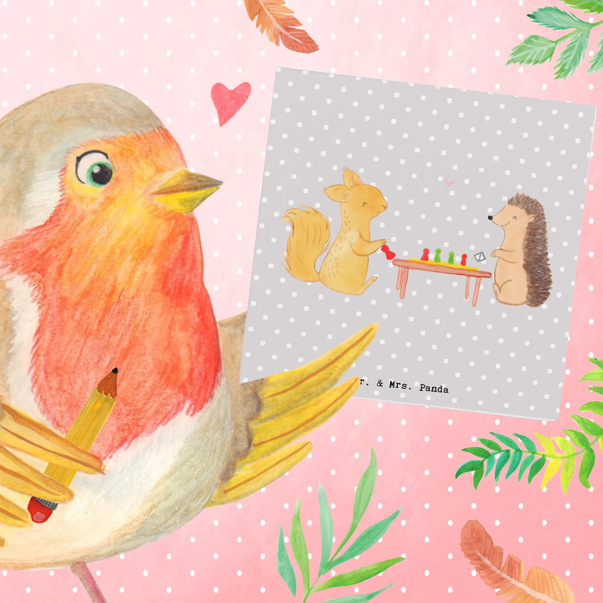 Ob zum Geburtstag, zur Hochzeit oder einfach als kleiner Dank für einen lieben Menschen, diese hochwertige Grußkarte wird seine Freude bereiten. Auf der Vorderseite sind das fröhliche Eichhörnchen und sein Freund, ein Igel, zu sehen, die ausgelassen ein Gesellschaftsspiel spielen. Dieses handgezeichnete Design von Mrs. Panda strahlt pure Lebensfreude aus und spricht die Herzen von Spielern, Sportbegeisterten und Hobby-Fans gleichermaßen an.
