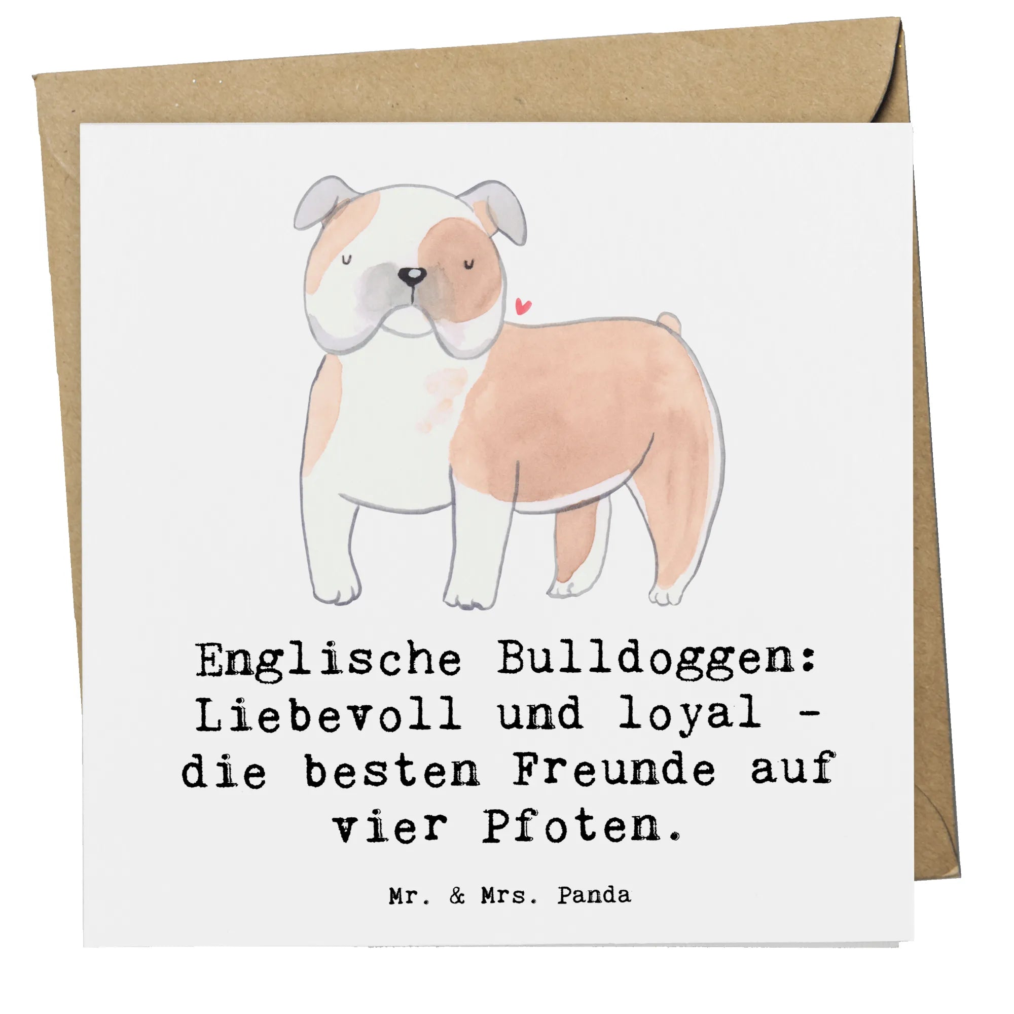 Die Deluxe Karte mit dem Motiv der Englischen Bulldogge aus der Hunderassen-Kollektion von Mr. & Mrs. Panda ist das perfekte Geschenk für alle Hundefans und Tierliebhaber! Ob zum Geburtstag, zur Hochzeit oder einfach nur um jemandem eine Freude zu machen - diese Grußkarte begeistert immer. Der sentimentale Spruch "Englische Bulldoggen: Liebevoll und loyal - die besten Freunde auf vier Pfoten" trifft das Herz jedes Hundebesitzers und lässt die Karte zu einem ganz besonderen Gruß werden.