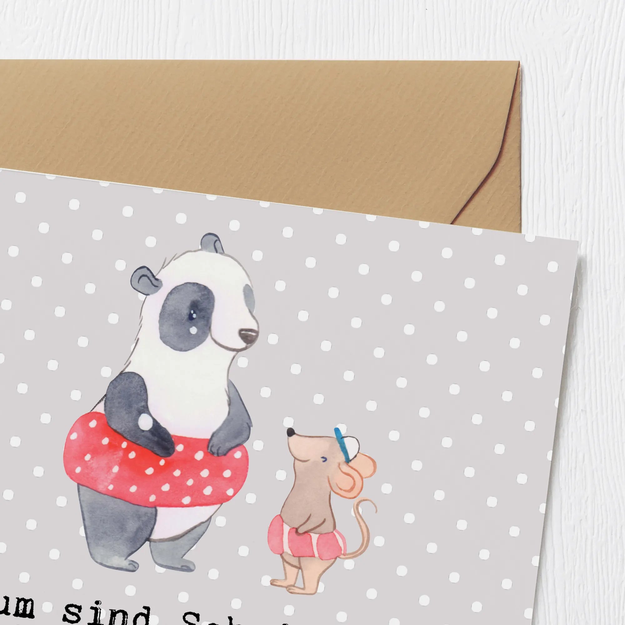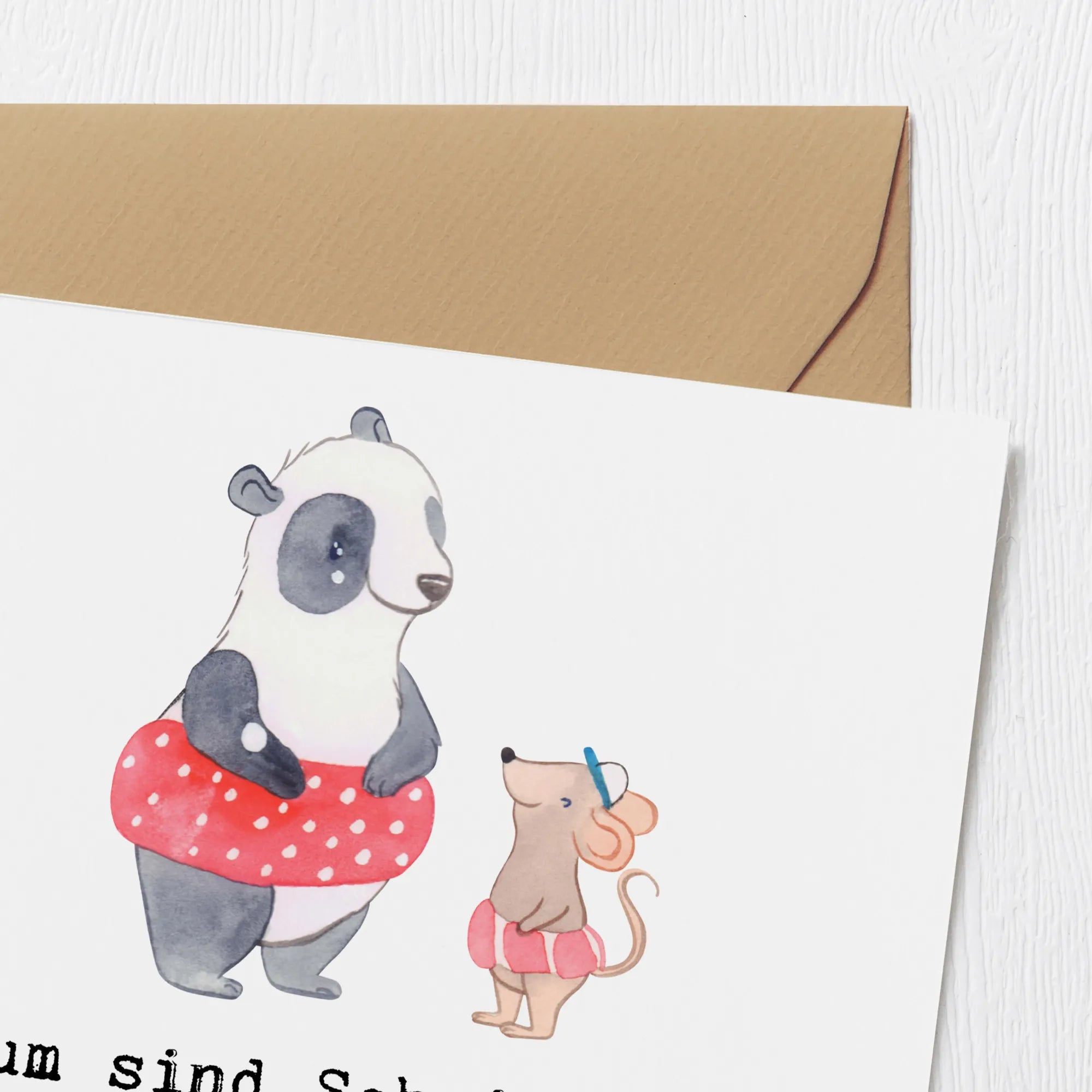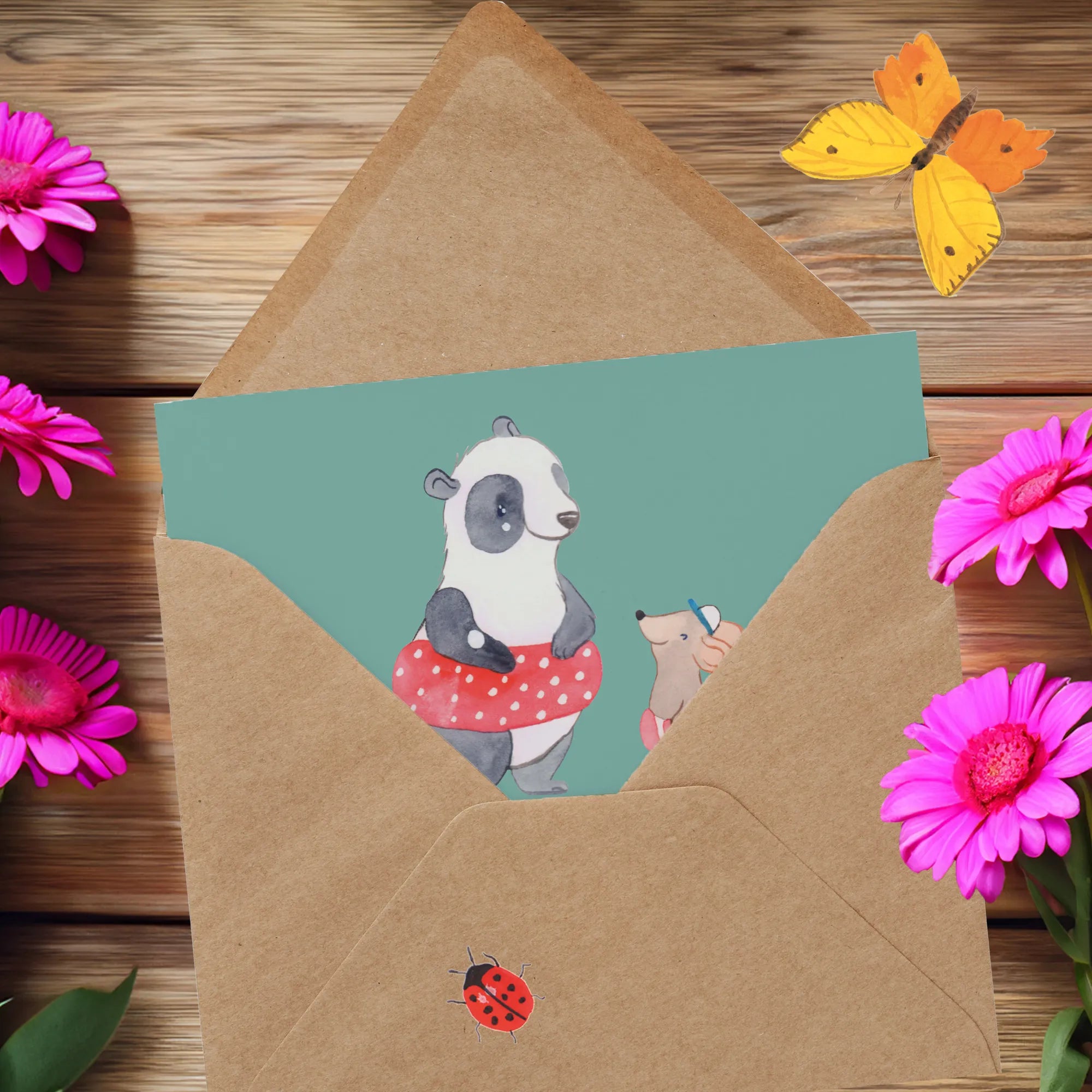 Die Vorderseite der Karte besticht durch ein süßes, handgezeichnetes Motiv von Mrs. Panda, während die matte Innenseite sich hervorragend für individuelle Widmungen eignet. Die Karte besteht aus hochwertigem Karton mit einer glänzenden Veredelung, die ihr einen edlen Look verleiht. Die Berufe Kollektion von Mr. & Mrs. Panda ist eine liebevolle Zusammenstellung, die sich perfekt für Menschen eignet, die in der Schwimmbranche tätig sind oder einfach eine Vorliebe für Wasser und Schwimmen haben.