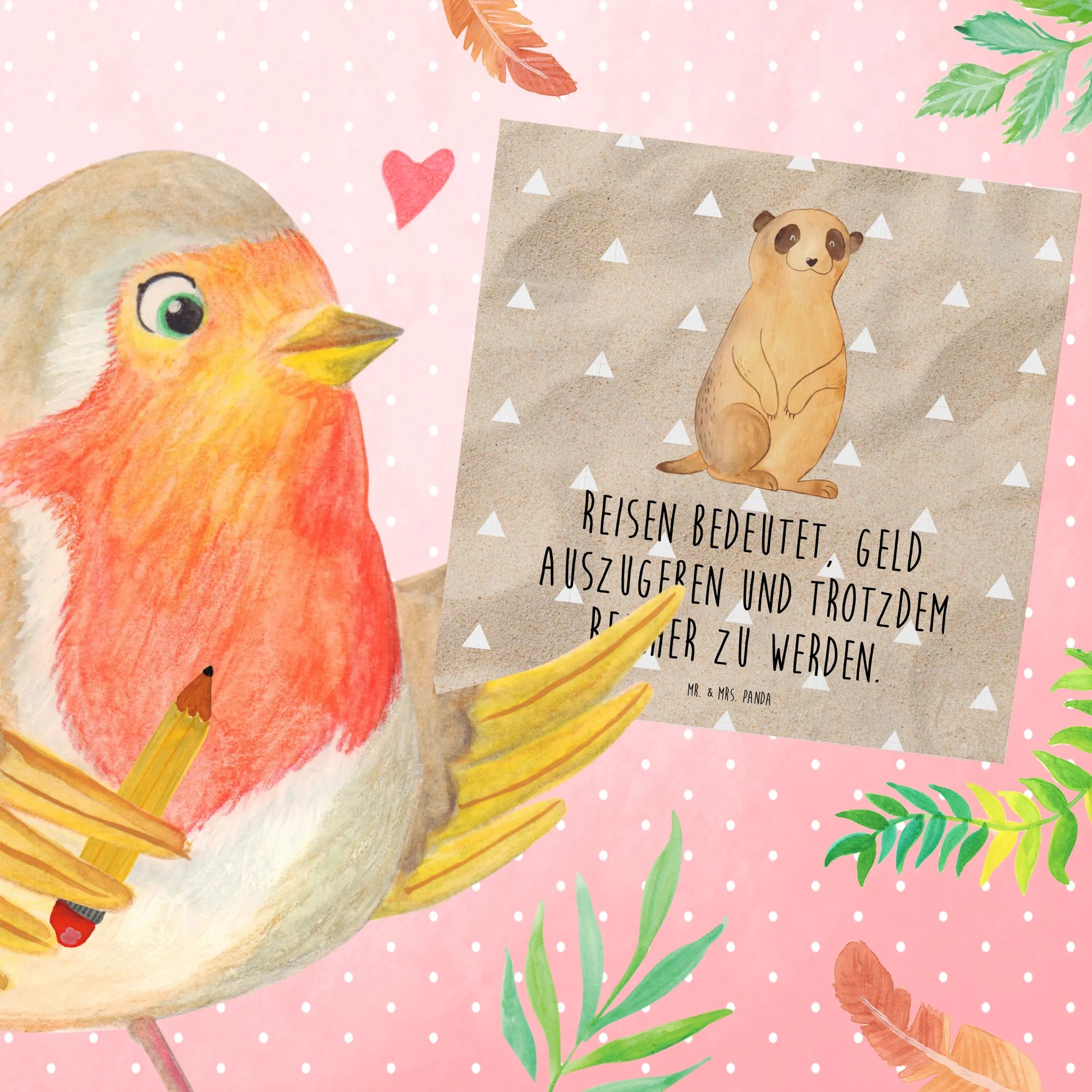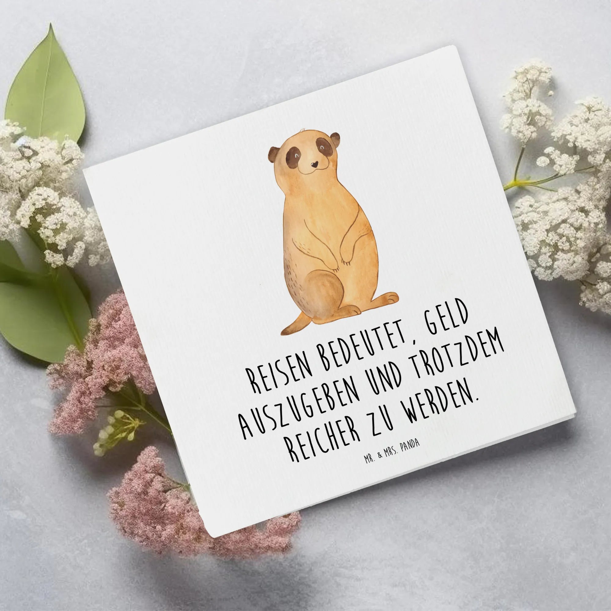 Das süße Erdmännchen auf der Vorderseite symbolisiert Niedlichkeit und Neugier, genau wie das Reisen selbst. Mit dem Spruch "Reisen bedeutet, Geld auszugeben und trotzdem reicher zu werden" inspiriert sie dazu, die Welt zu erkunden.