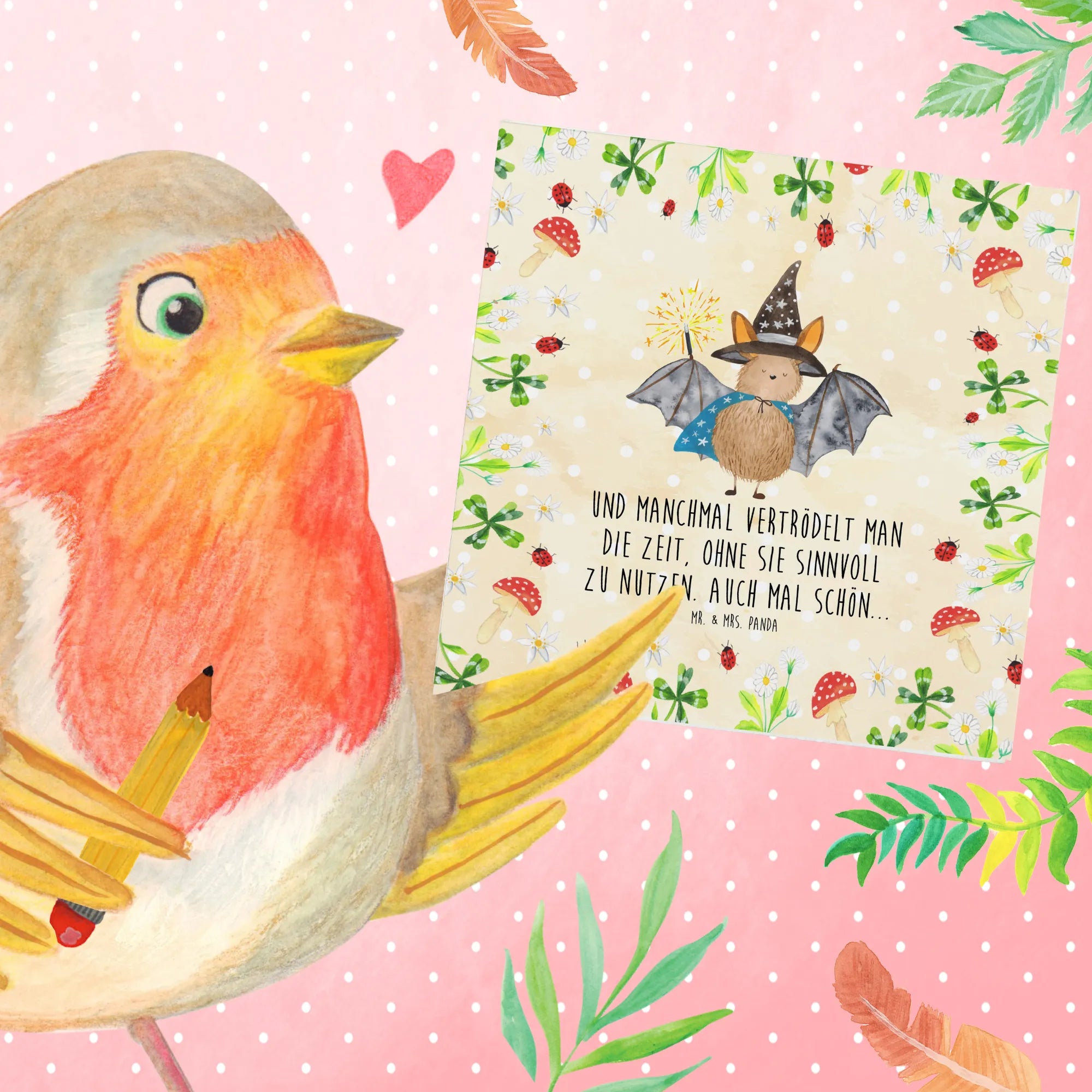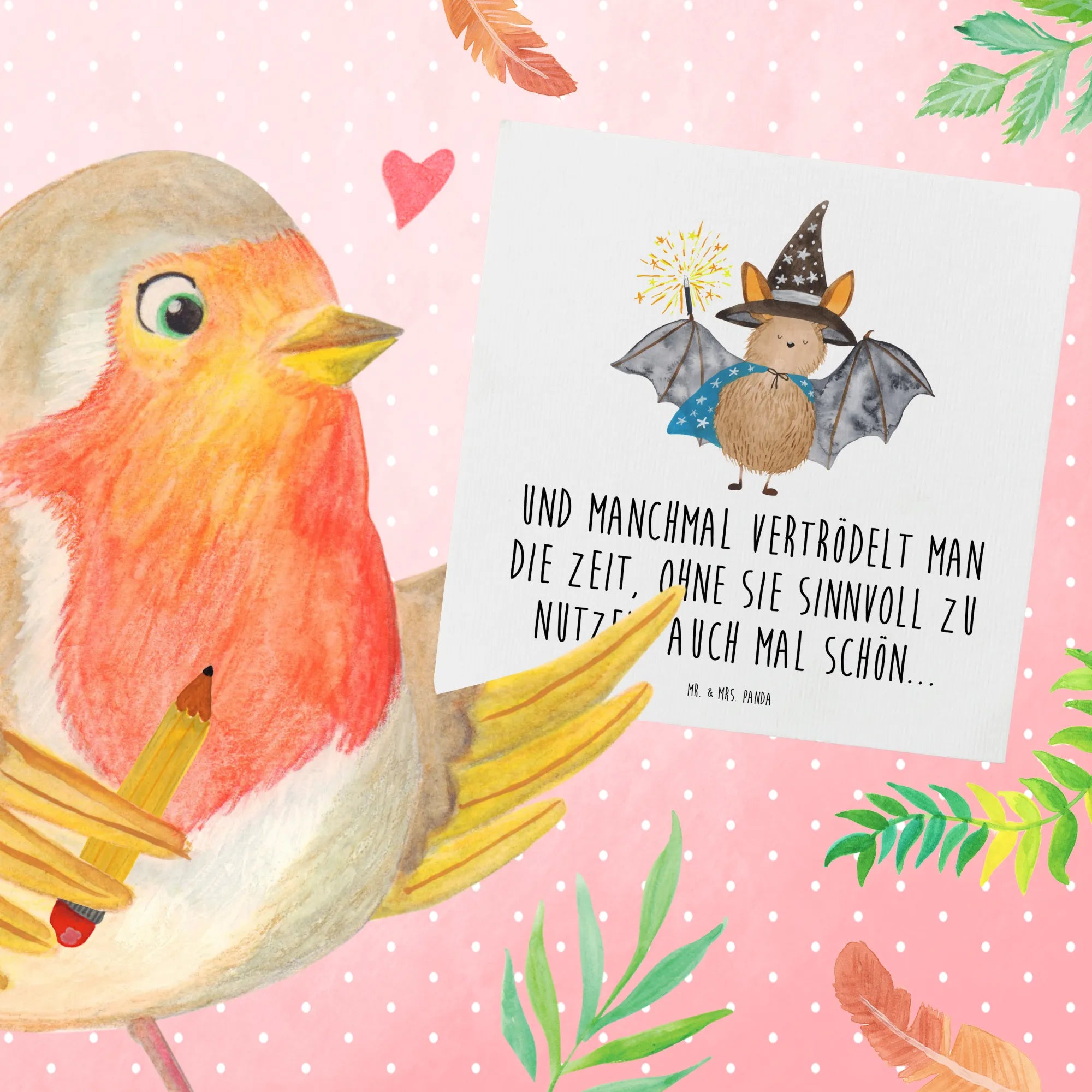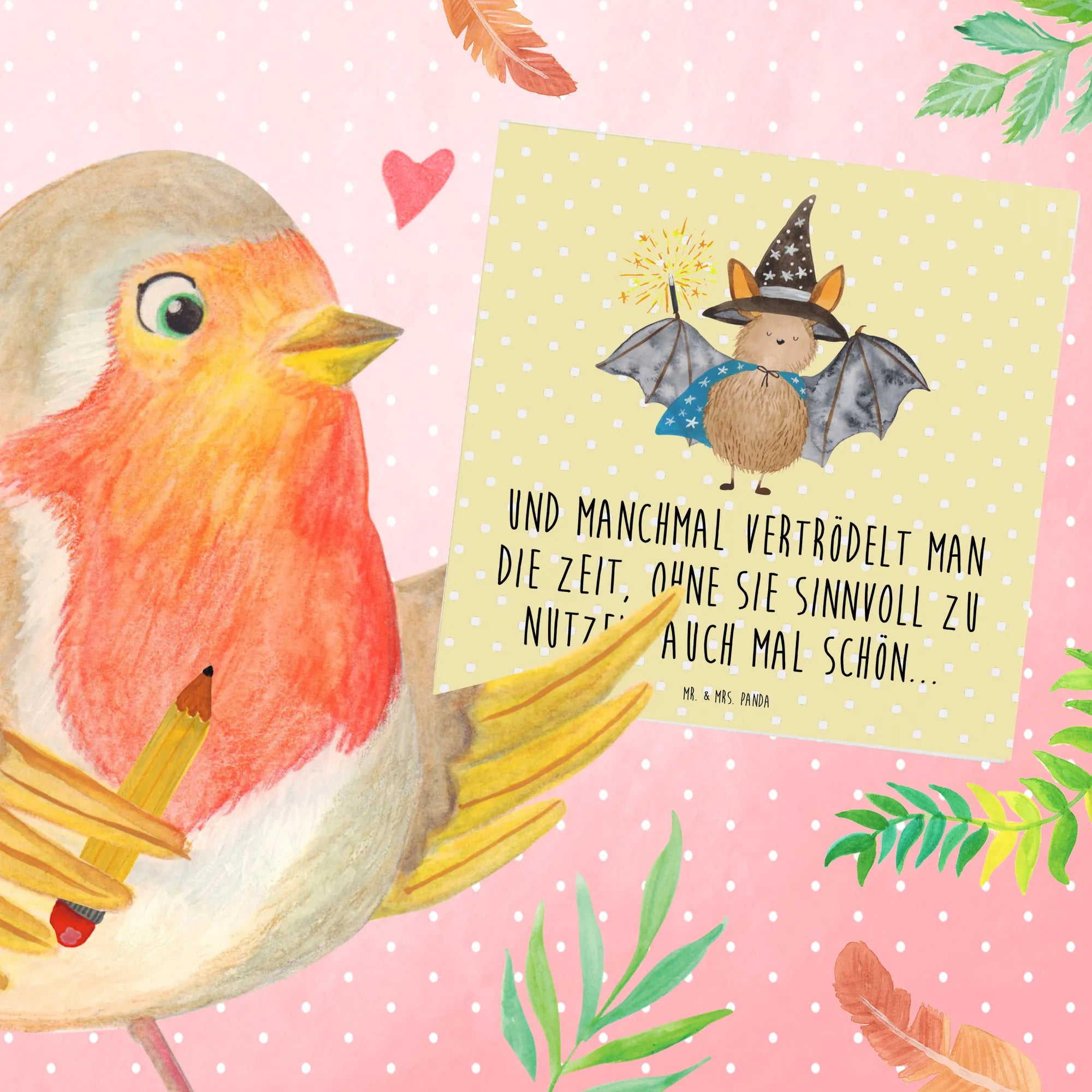 Schreib deiner besten Freundin, deinem Neffen oder deiner Cousine ein paar liebe Worte und verschicke die Karte zu einem besonderen Anlass oder einfach so - nur um zu zeigen, dass du an sie denkst. Diese "Fledermaus Zauberer" Karte ist nicht nur ein Stück Karton; sie ist ein kleiner magischer Moment, der Freude und ein Lächeln schenkt. Lass die Magie der Worte mit dieser einzigartigen Karte von Mr. & Mrs. Panda lebendig werden!