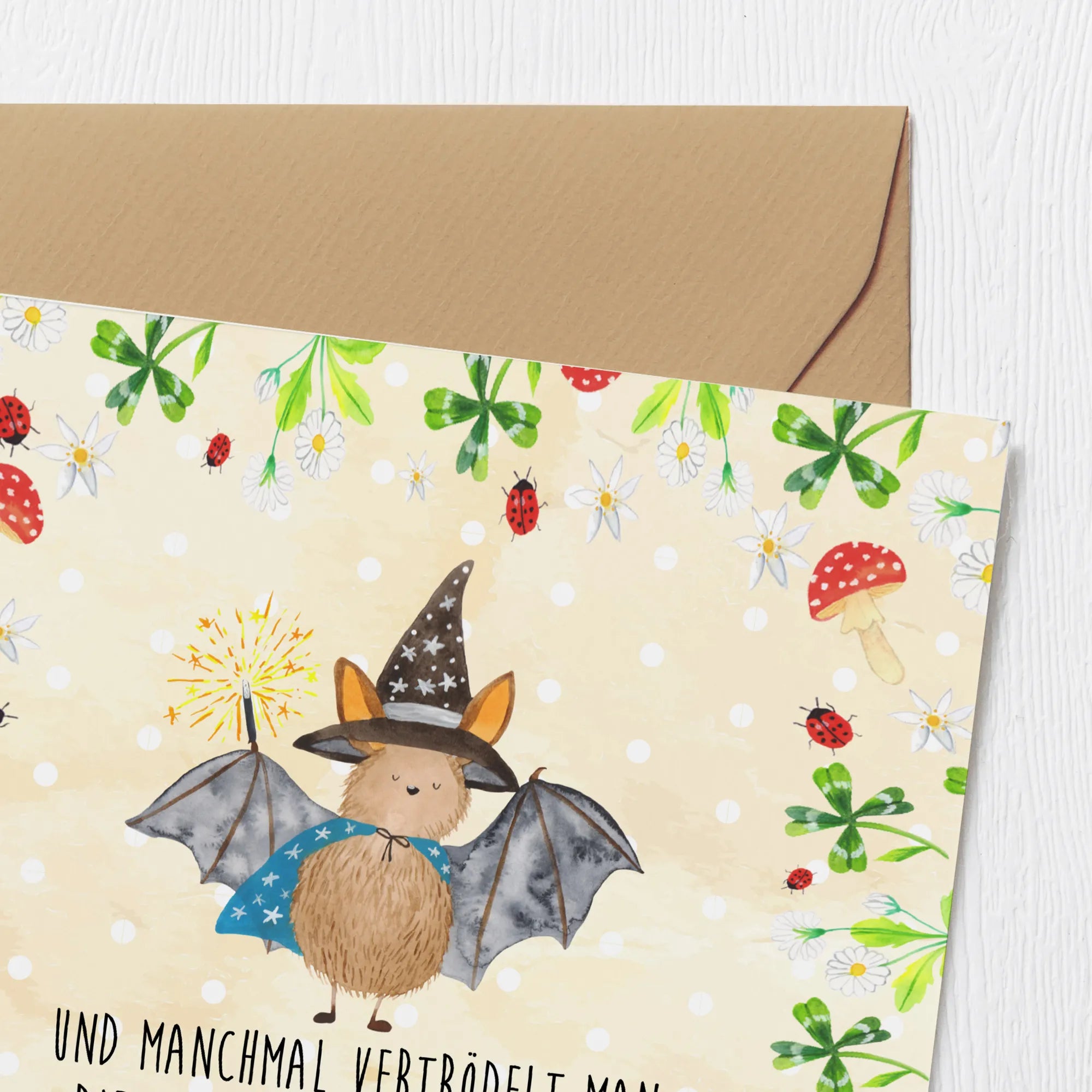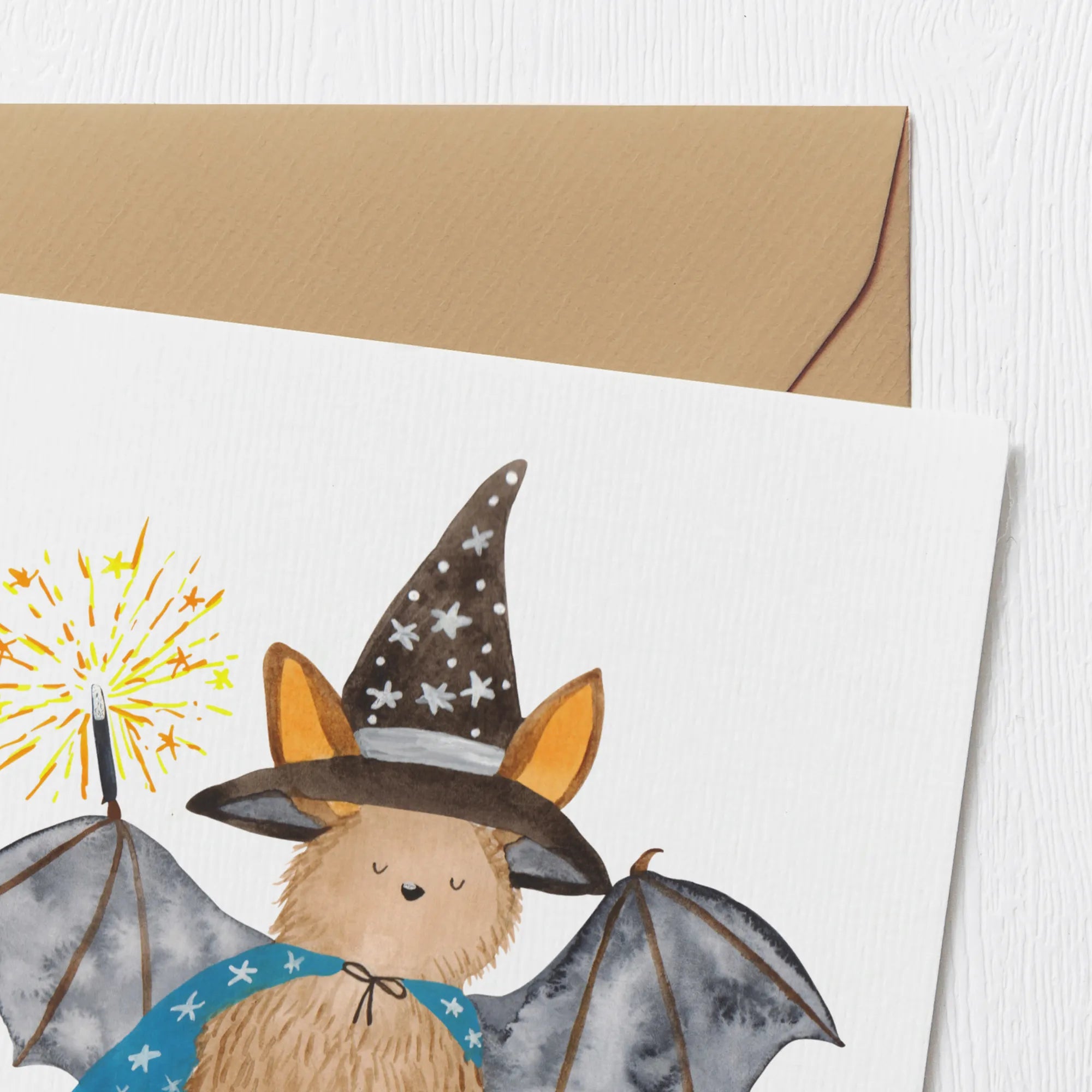 Deluxe Karte Fledermaus Zauberer - mit Spruch - Naturpapier