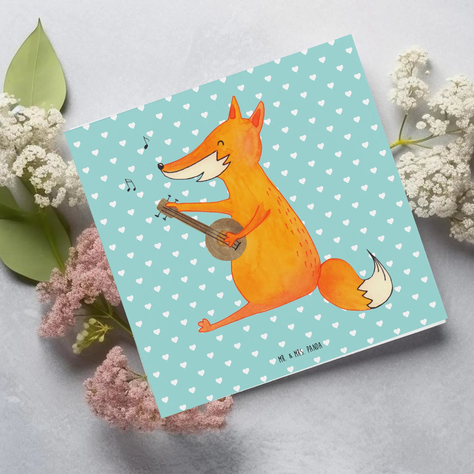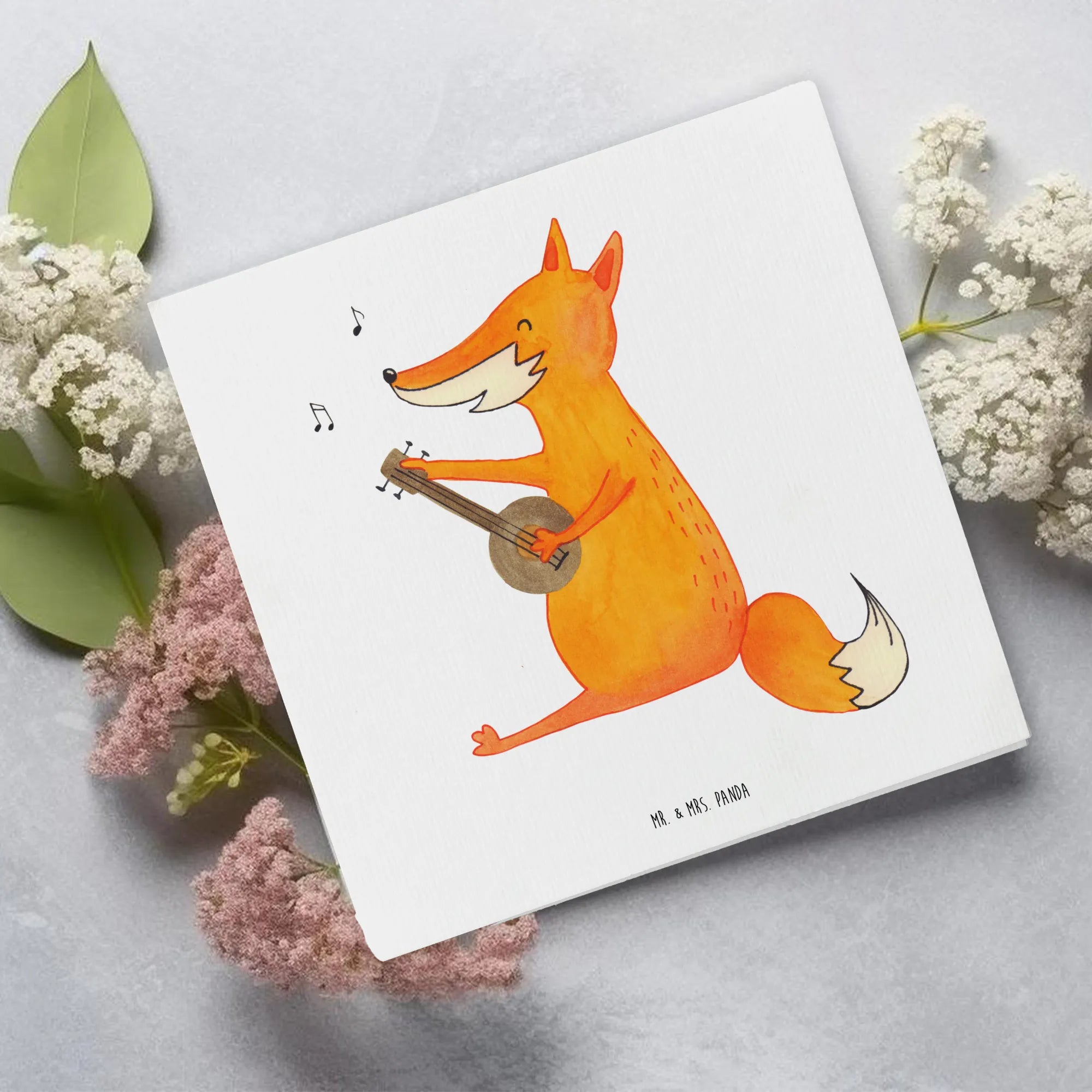 Die Deluxe Karte mit dem wunderbaren Motiv Fuchs Gitarre aus der Fuchs Kollektion von Mr. & Mrs. Panda ist das perfekte Geschenk für Musikliebhaber und Tierfreunde. Diese hochwertige, quadratische Klappkarte misst 140 mm x 140 mm und besteht aus edlem 300 Gramm Karton.