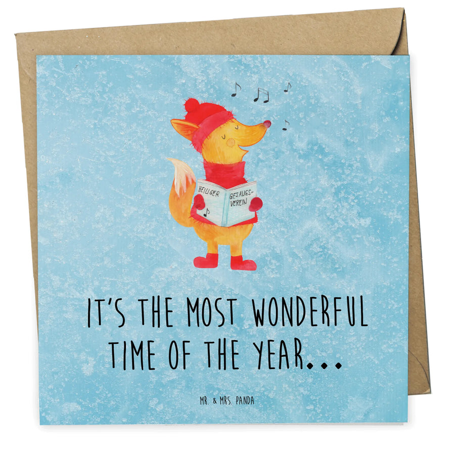Juhu – die schönste Zeit im Jahr beginnt! Unsere Deluxe Karte „Fuchs Sänger“ aus der Winter Kollektion von Mr. & Mrs. Panda ist wie gemacht, um Weihnachtsstimmung zu verschicken. Auf der Vorderseite siehst du unseren fröhlichen Fuchs mit roter Mütze, Schal und Stiefeln, der in ein Liederbuch blickt und singt. Musikalische Noten und der liebevolle Slogan „It's the most wonderful time of the year…“ machen die Karte besonders warmherzig 🎶❄️