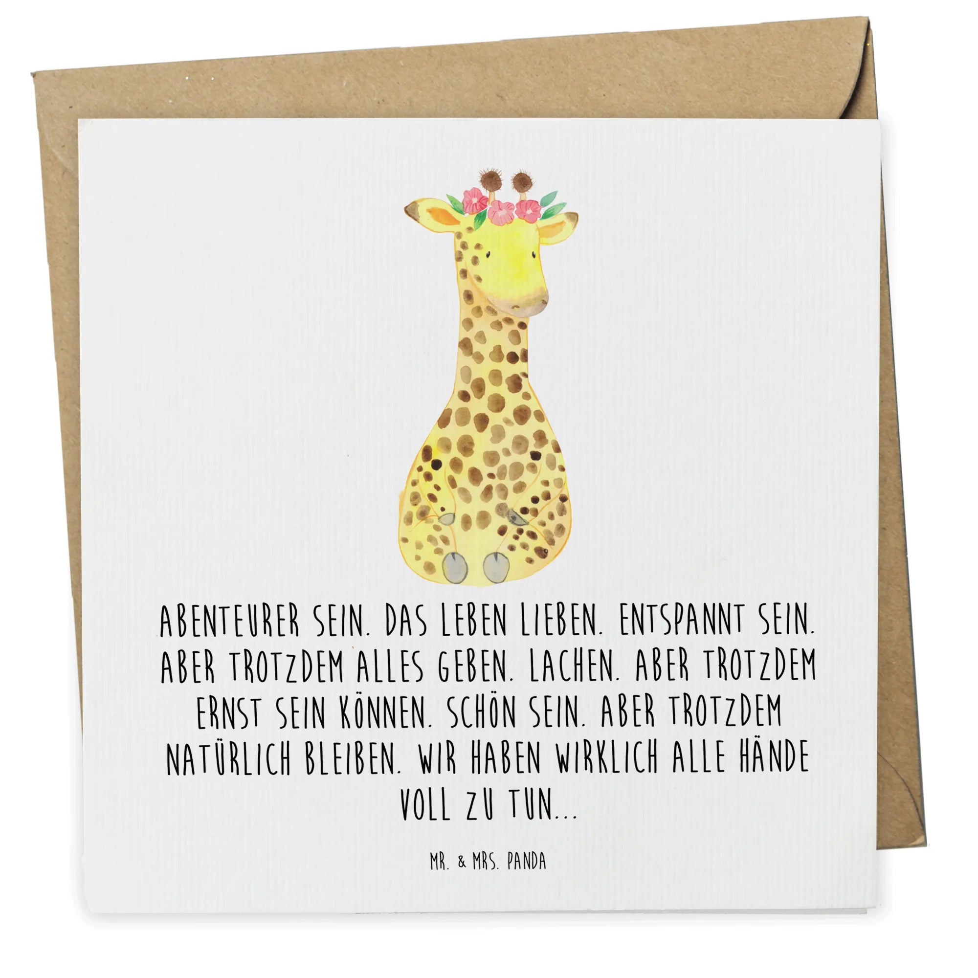 Überrasche deine Liebsten mit einer herzlichen Botschaft in dieser edlen Karte und ermögliche es ihnen, die Freude und den Spaß am Leben zu zelebrieren. Denn manchmal ist es die kleine Geste, die großes bewirken kann! Egal, ob du sie für persönliche Glückwünsche, als Einladung oder auch als liebevolle Erinnerung an einen besonderen Moment nutzt – sie wird immer ein Lächeln zaubern. Lass die Giraffe im Blumenkranz auch dich inspirieren, Abenteurer zu sein und das Leben zu lieben – mit dieser besonderen Grußkarte von Mr. & Mrs. Panda kannst du genau das tun!