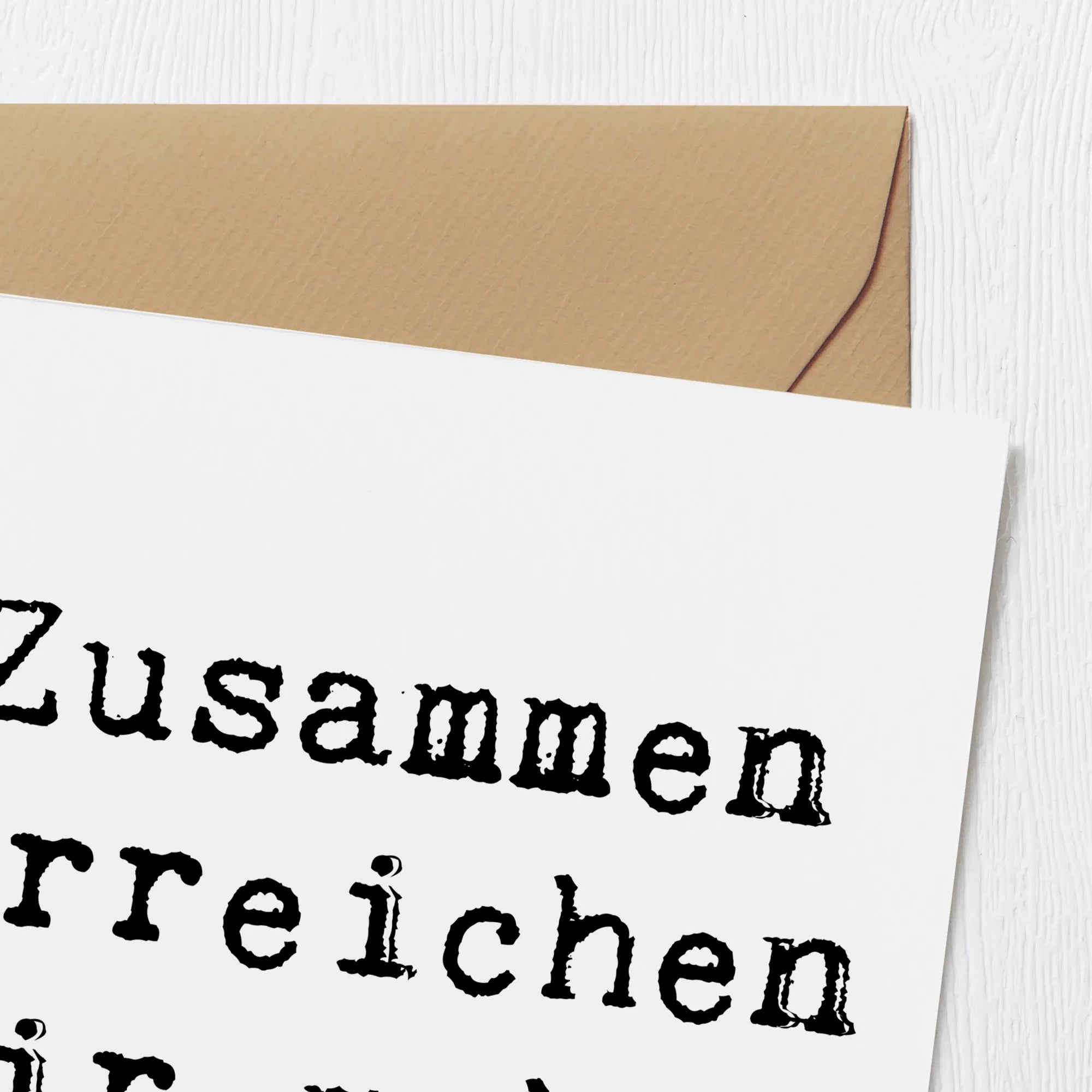 Auf der Vorderseite der Karte prangt ein inspirierendes Motiv, das das Motto 'Zusammen erreichen wir mehr!' in den Fokus stellt. Diese Botschaft ist nicht nur eine schöne Geste, sondern auch eine wertvolle Ermutigung für Freunde, Familie oder Kollegen.
